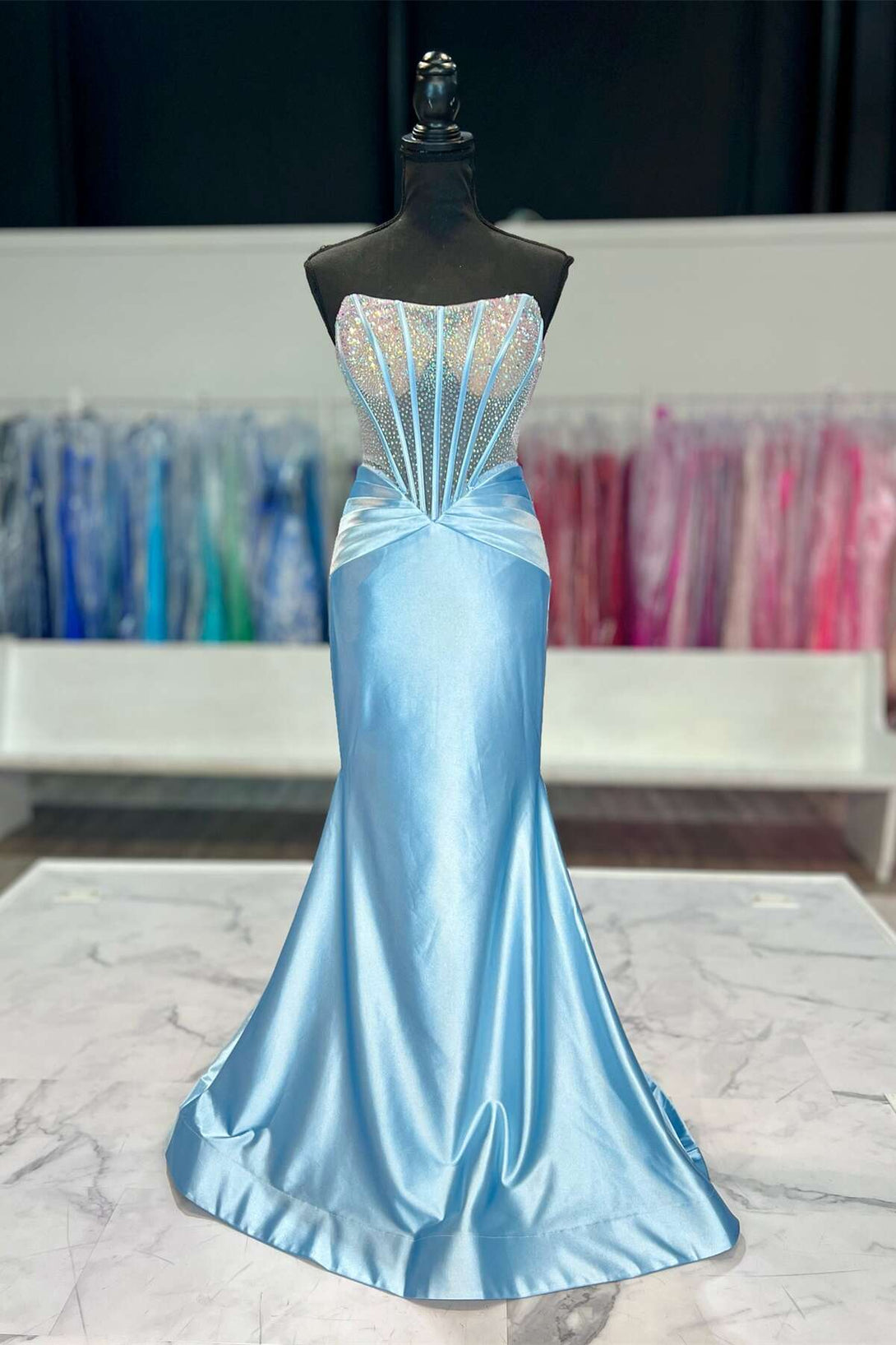 Beaded Corset light Blue Satin Mermaid Formal Dress