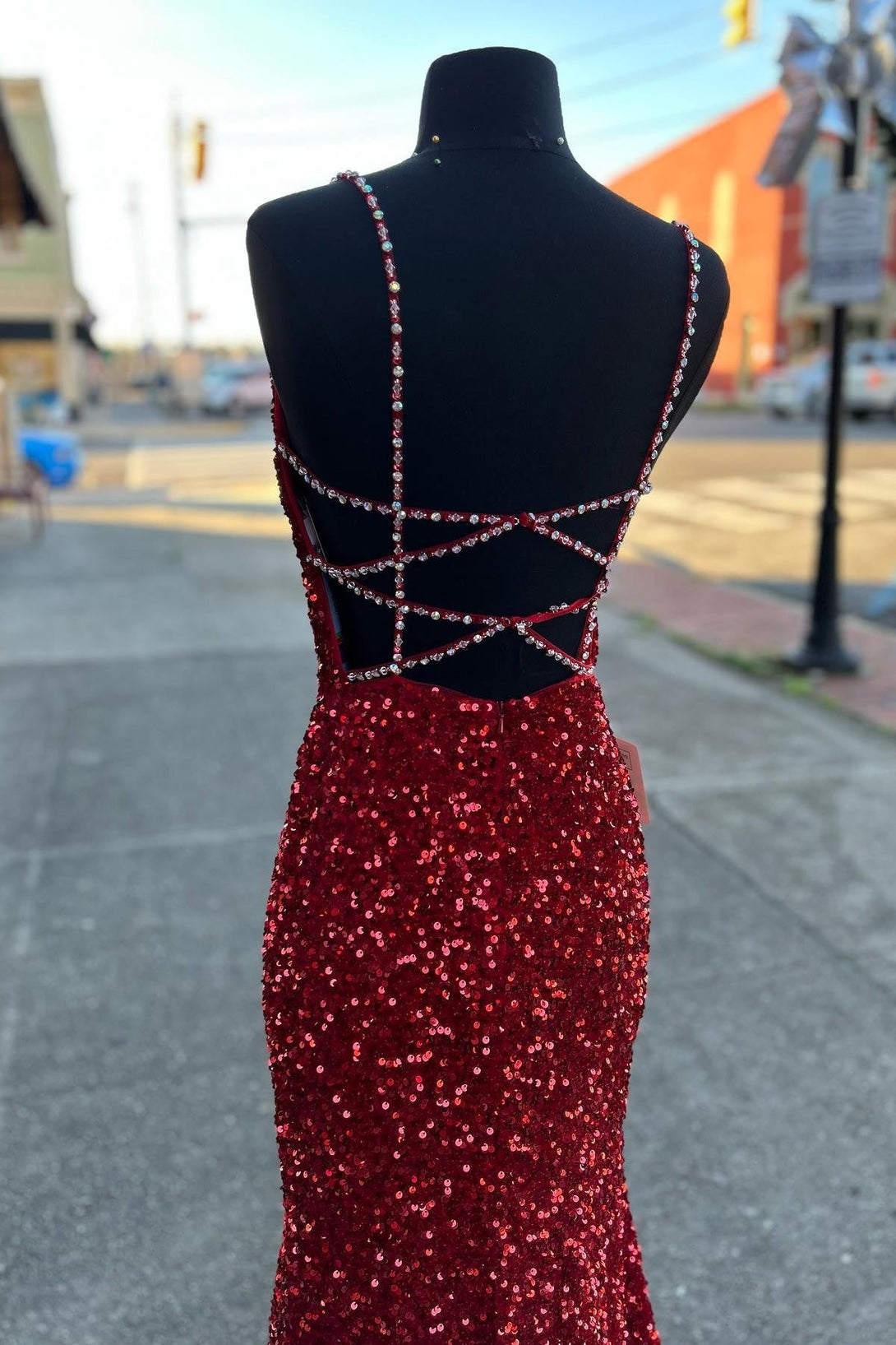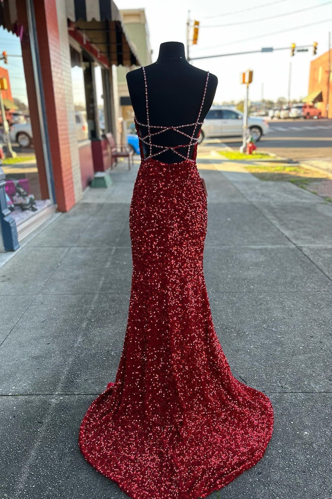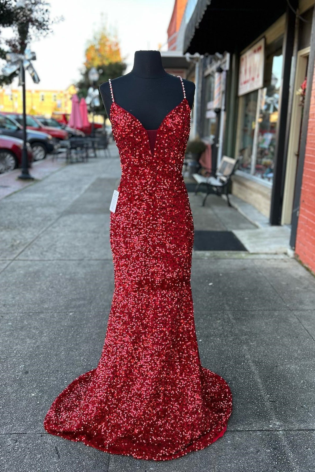 Beaded Straps Red Sequin Mermaid Formal Dress