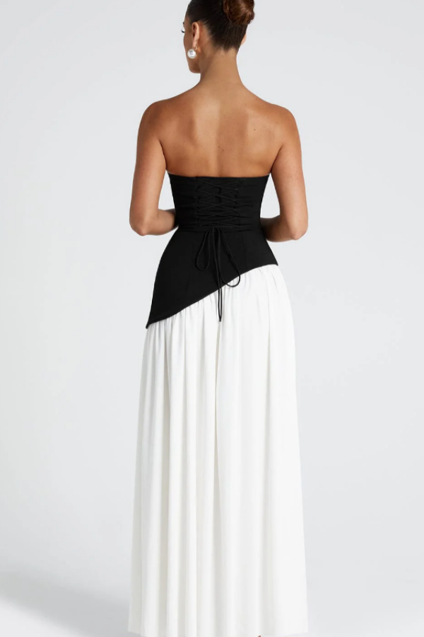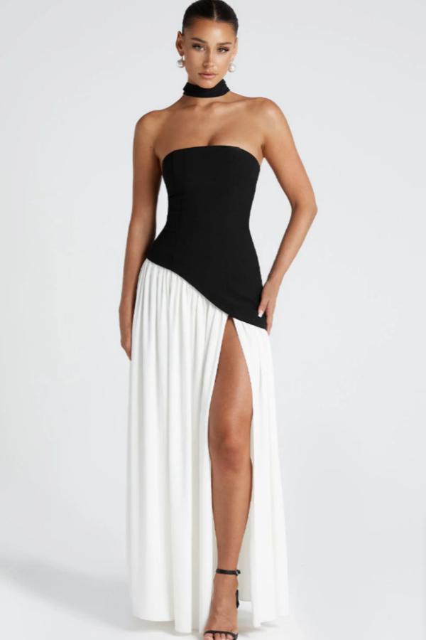 Black And White Splicing Split Prom Dress With Scarf ssr0643