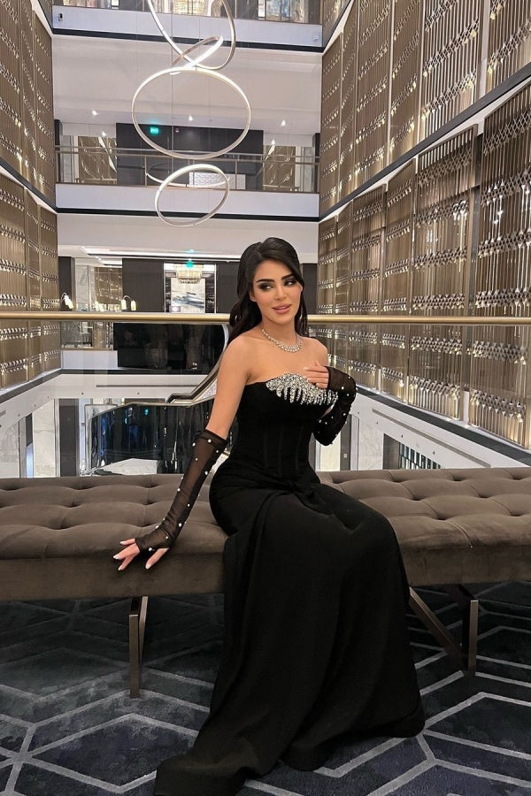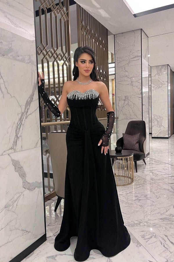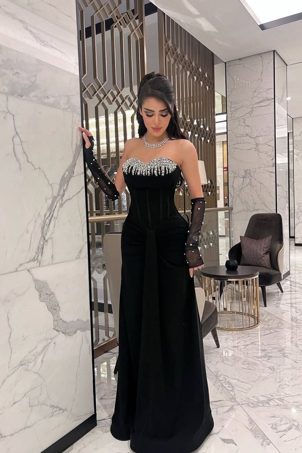 Black Beaded Strapless Sweetheart Prom Dress ssr0313