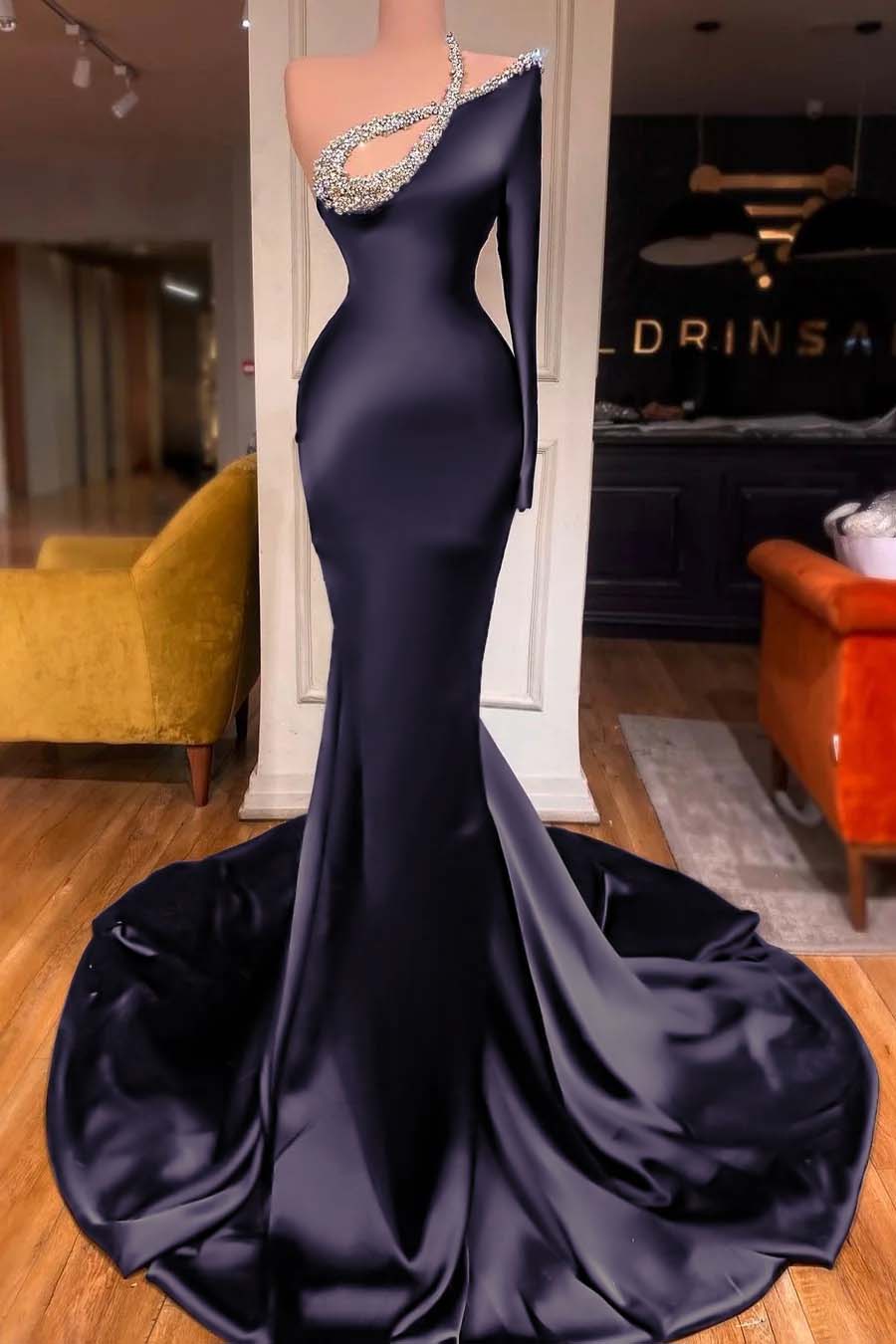 Black One Shoulder Prom Dress Mermaid With Beads YH0011
