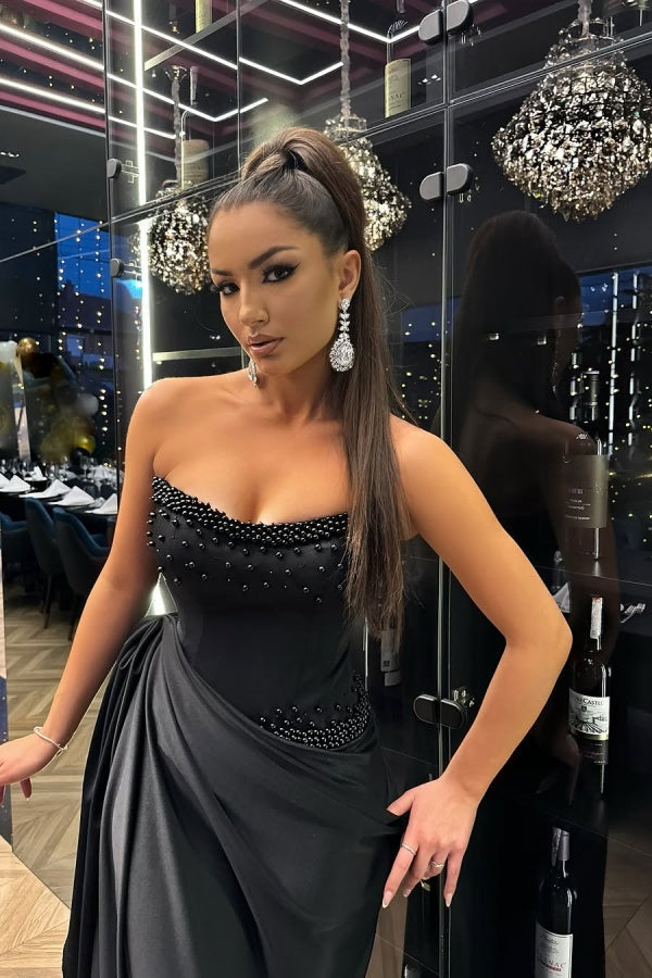 Black Pearls Beaded Strapless Prom Dress ssr0472