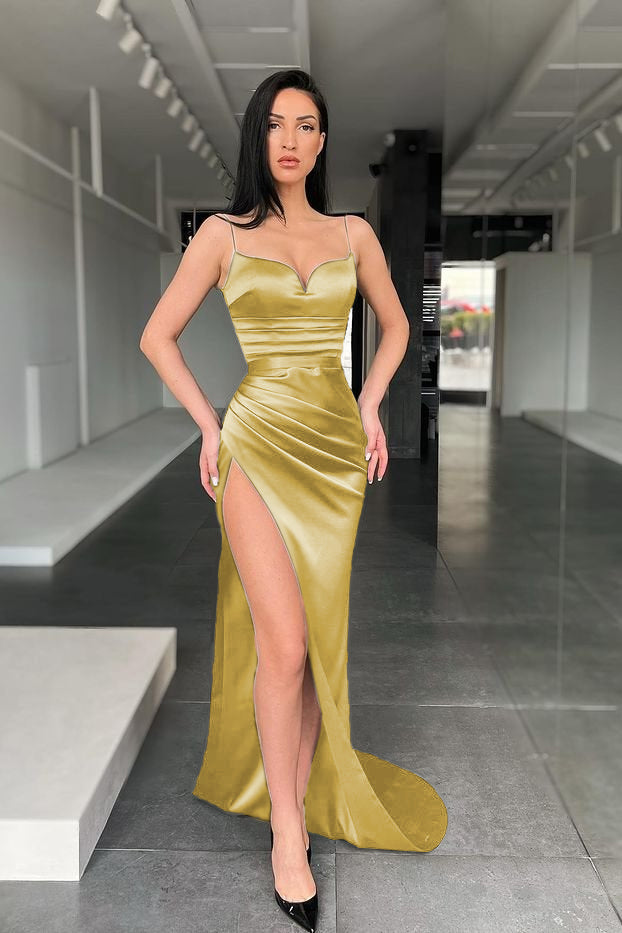 Black Spaghetti-Straps Mermaid Prom Dress With Slit PD0427