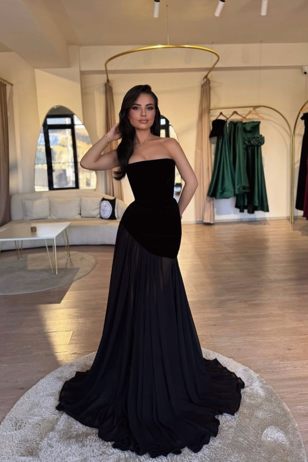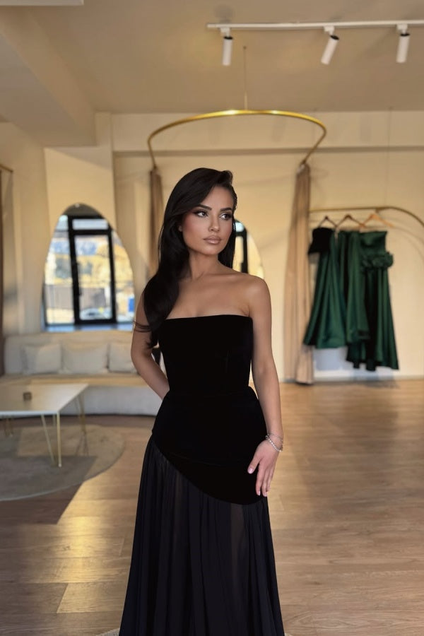 Black Strapless Spliced Chic Long Prom Dress ssr0556