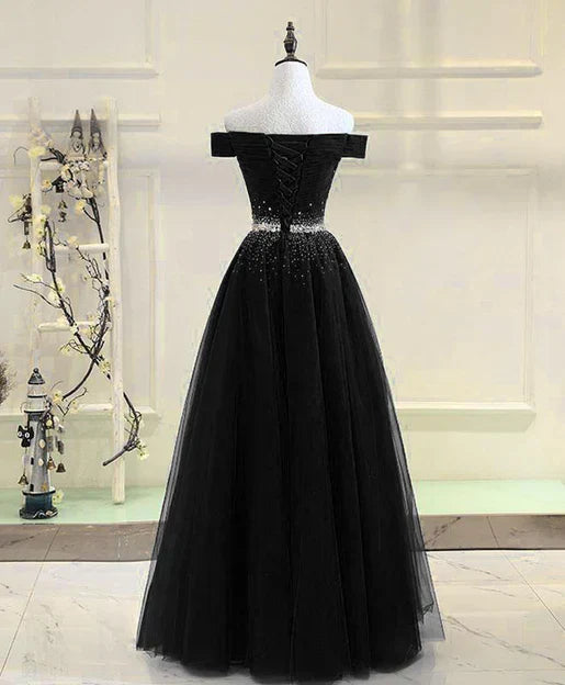 Black Tulle Off Shoulder Beaded Party Dress New Dress for Party Elegant Evening Dress