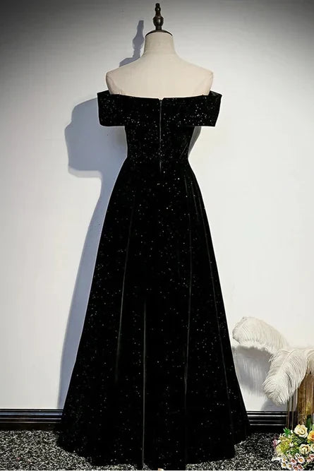 Black Velvet Off Shoulder Long Party Dress Simple Prom Dress Elegant Evening Dress