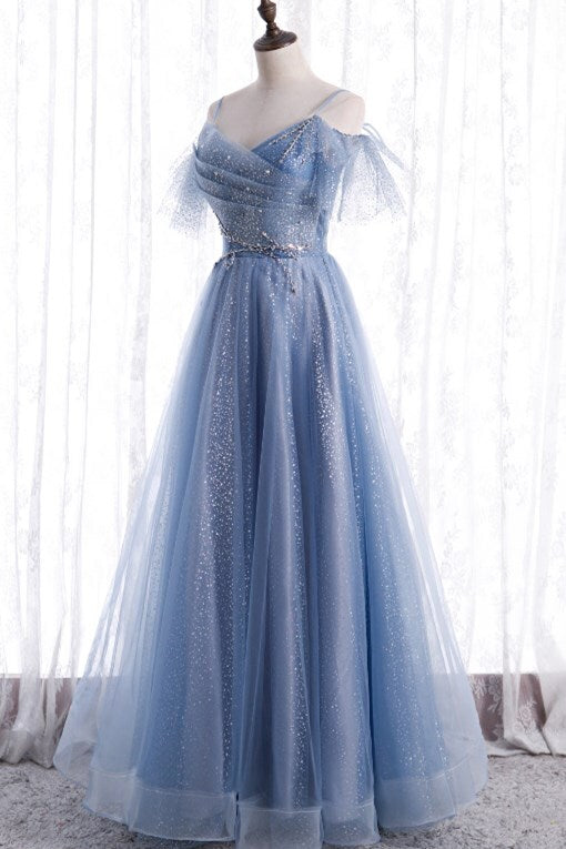 Blue A-line Long Formal Dress with Spaghetti Straps