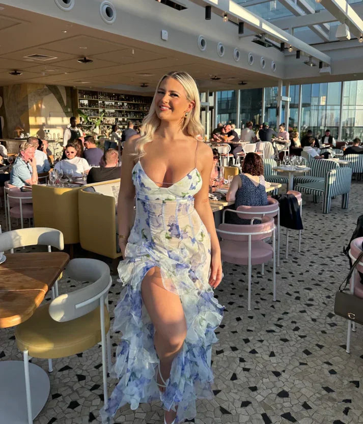 Blue Charming A-Line Spaghetti Strap Prom Dresses Party Dresses Formal Dress