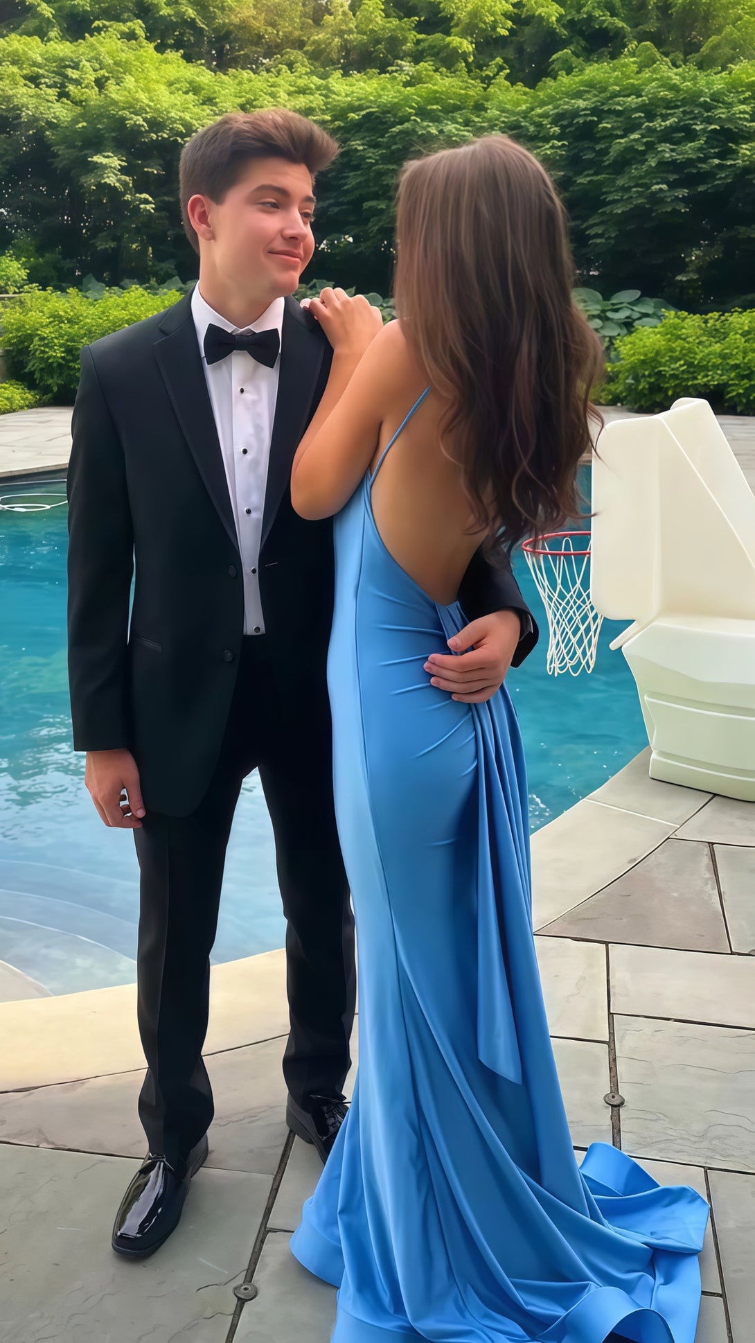 This elegant blue prom dress features a mermaid silhouette and a backless design, making it perfect for formal occasions and parties. Made with high-quality materials, this dress is both comfortable and stylish. Elevate your wardrobe with this stunning piece.