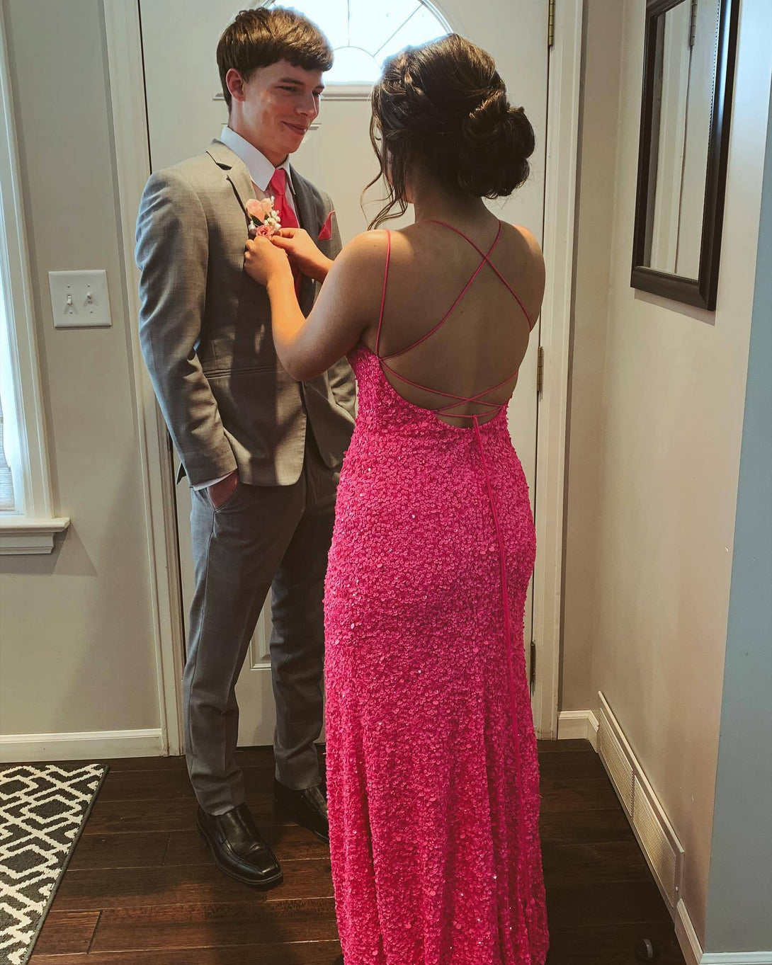 Blue Sequin Mermaid Long Formal Dress with Straps