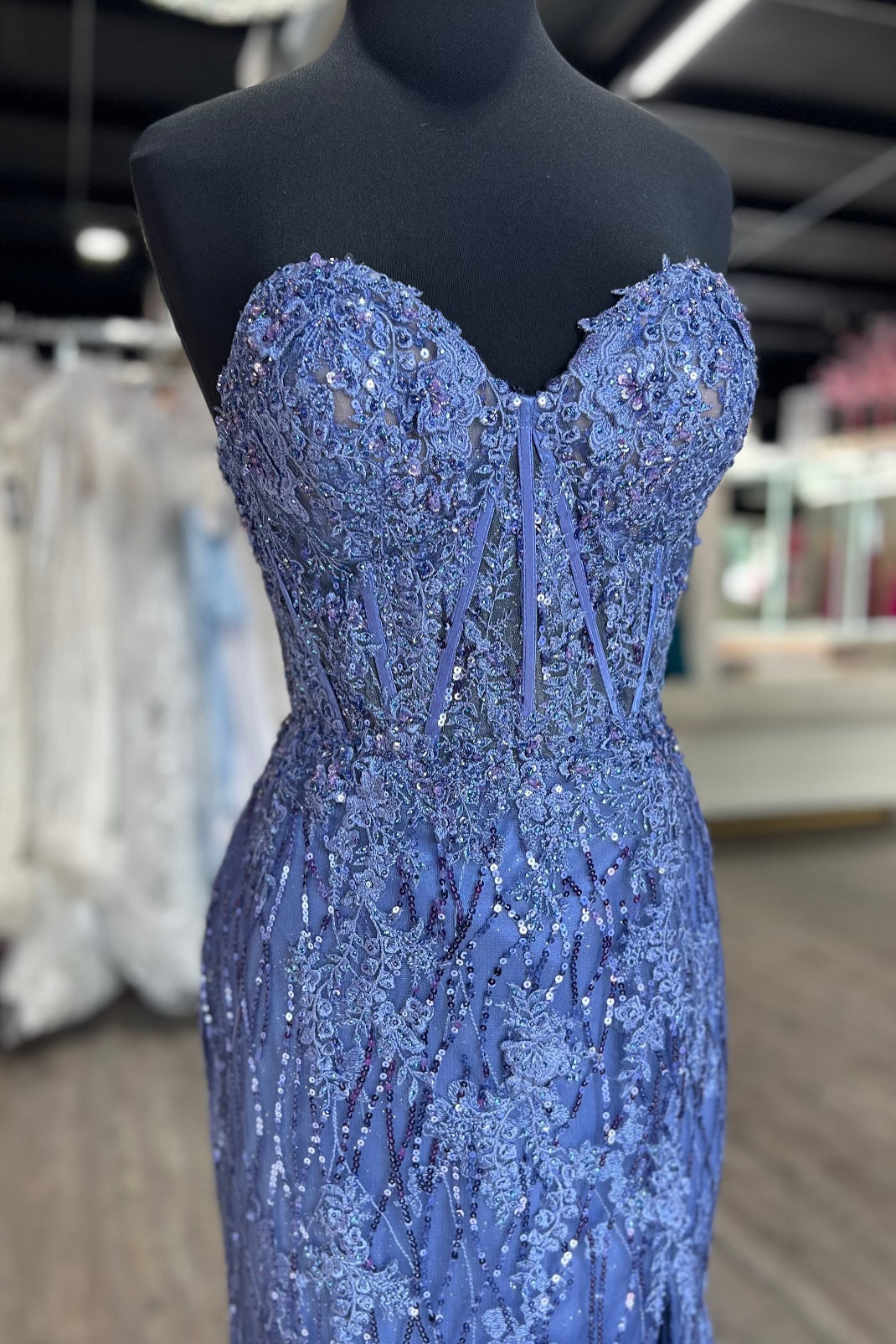 Blue Sweetheart Sequin Beaded Lace Applique Dress