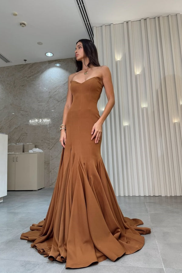 Brown Strapless Mermaid Elegant Chic Prom Dress ssr0553