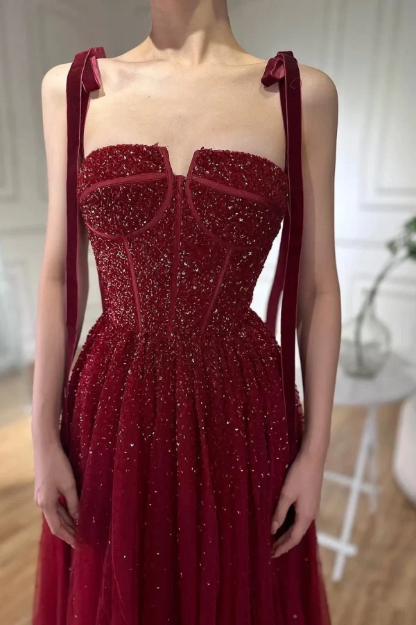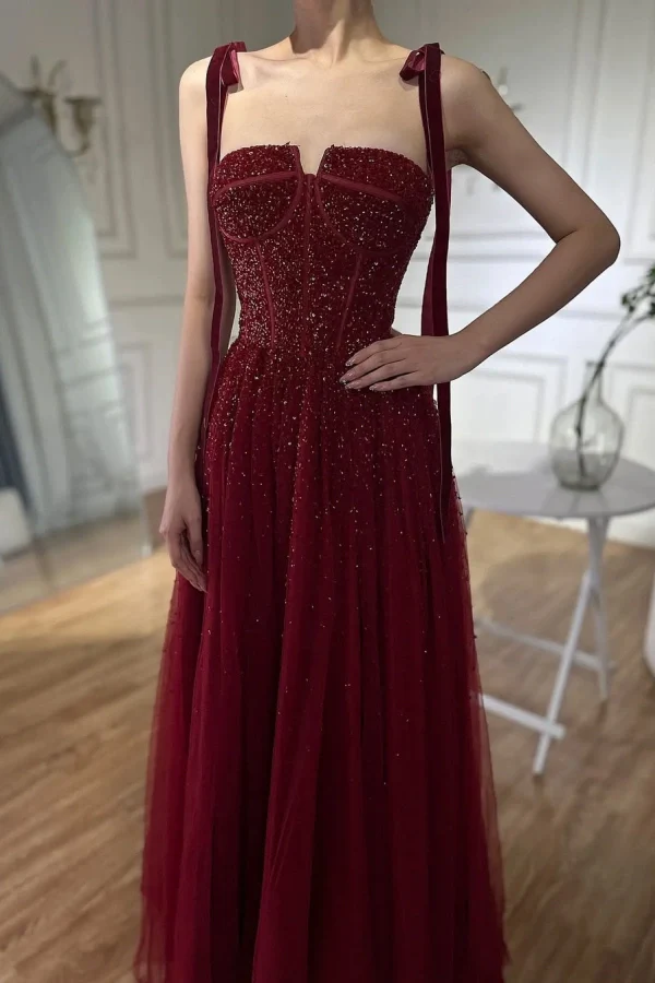 Burgundy Beaded Mesh Charming Prom Dress ssr0327