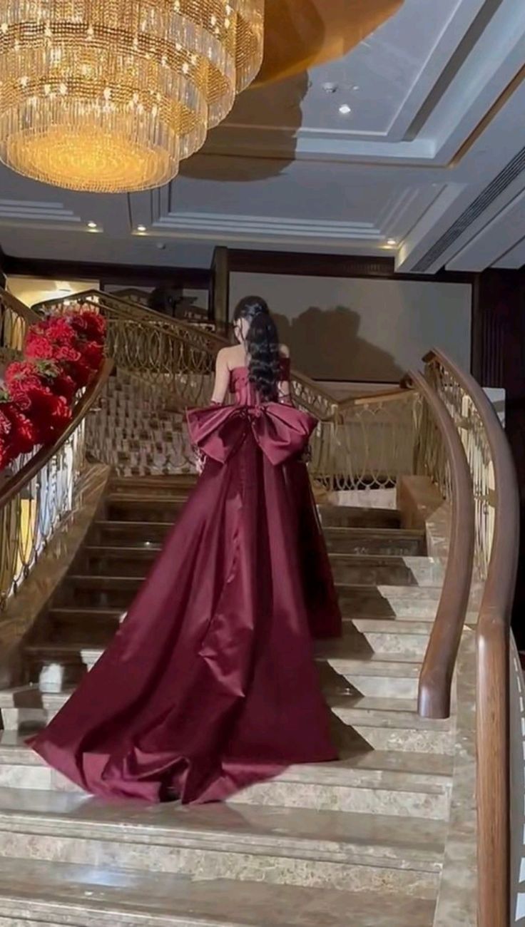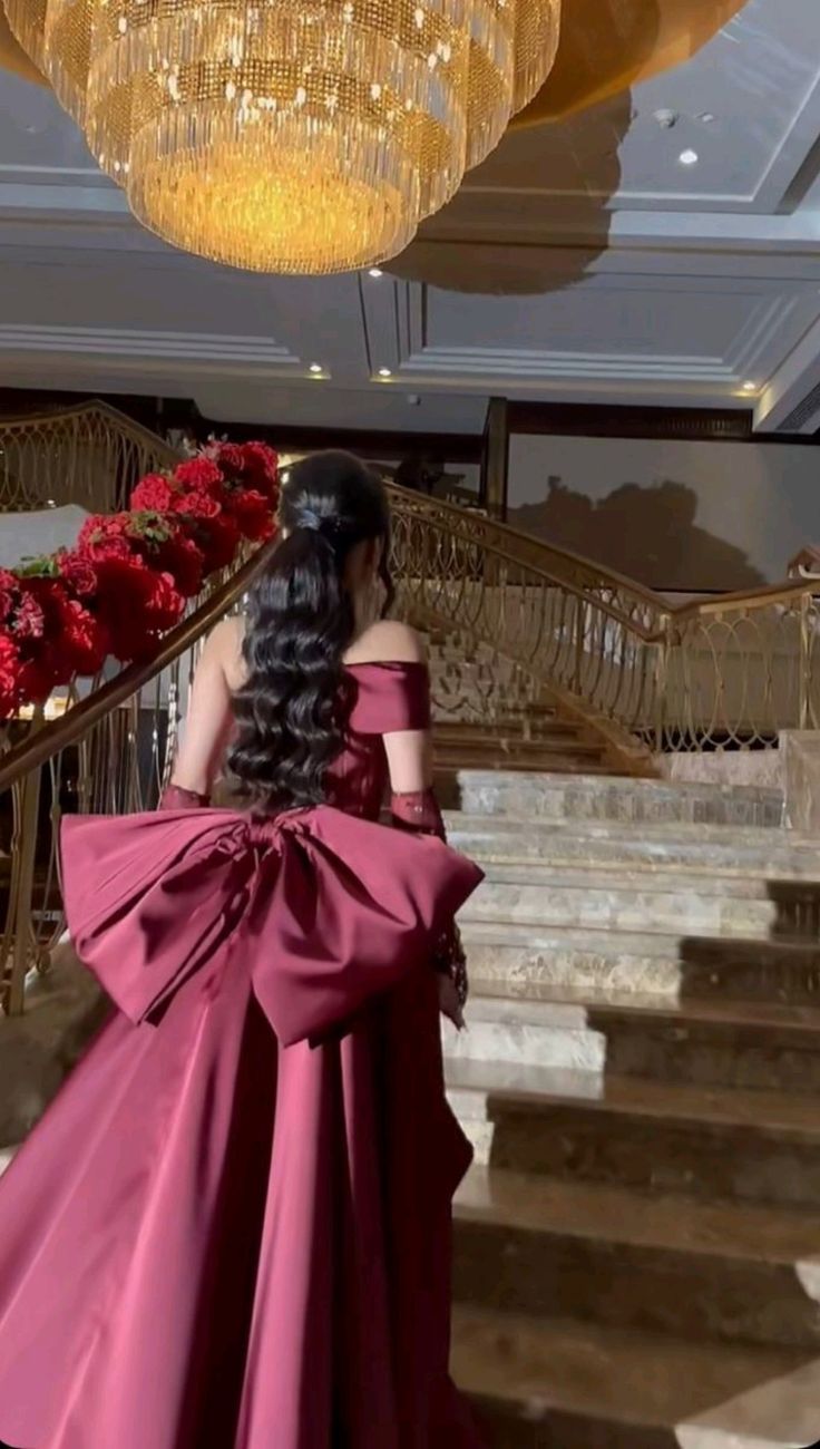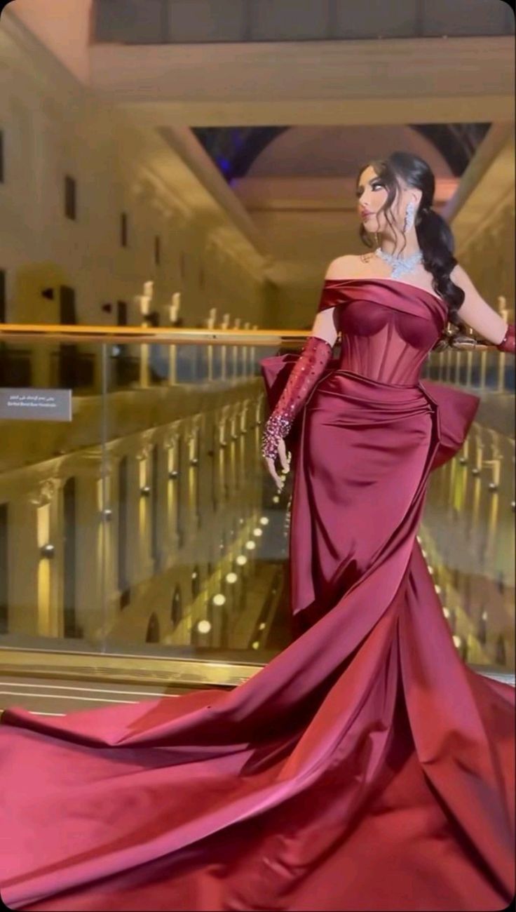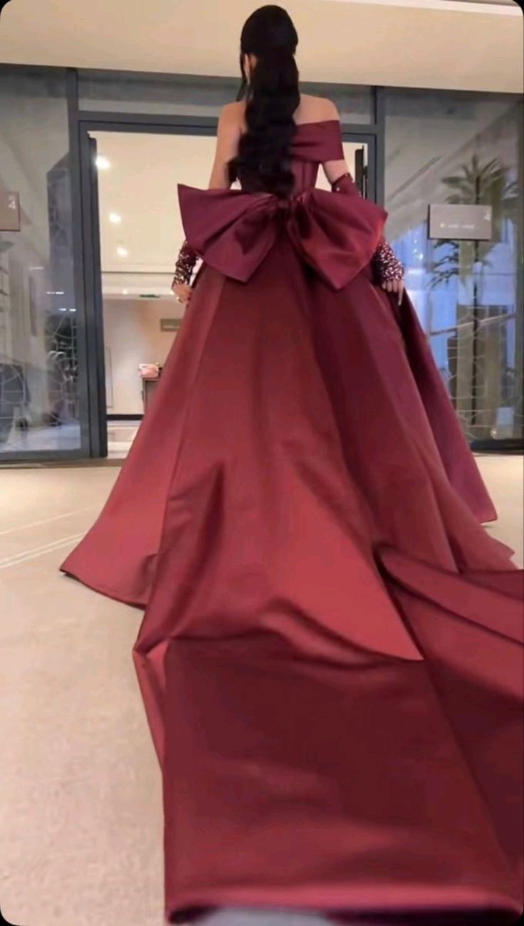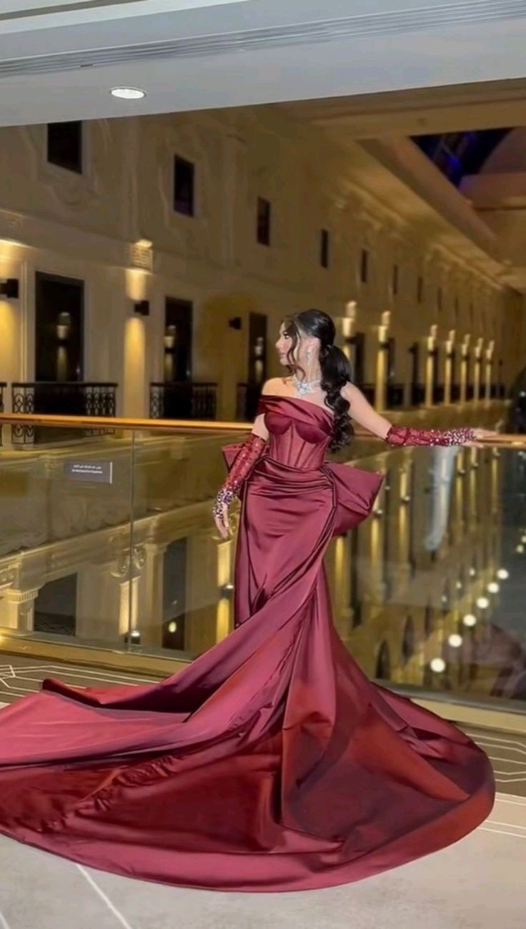 Burgundy One Shoulder Mermaid Bowknot Prom Dresses 2025