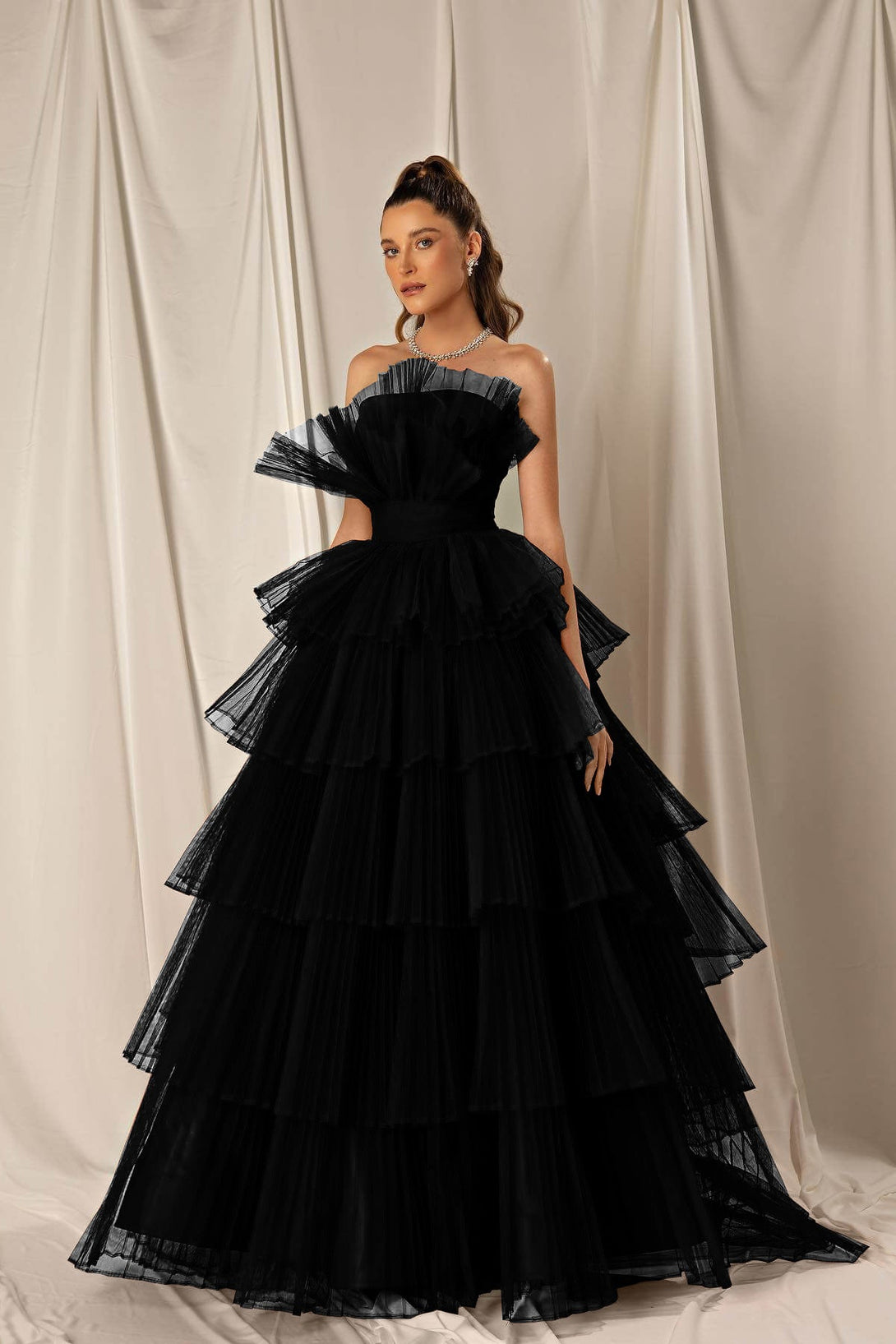 Burgundy Strapless Mermaid Sleeveless Layers Sleeveless Evening Dress Online ED0333