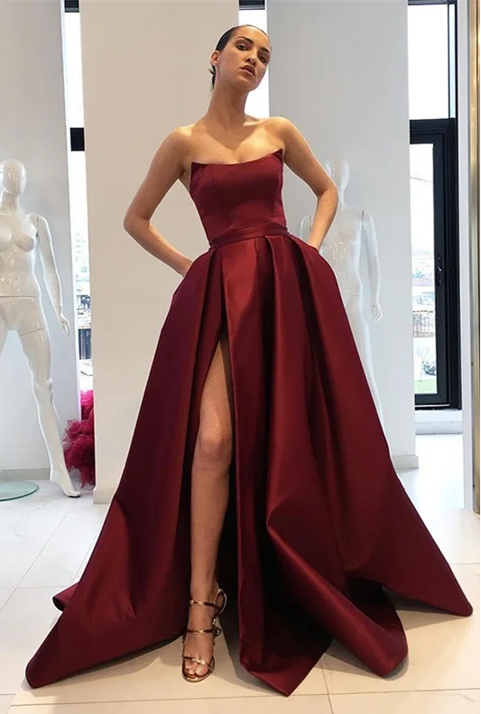 Strapless Burgundy Mermaid Prom Dress With Split PD0205