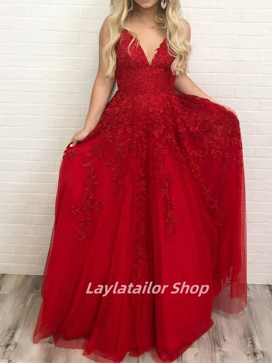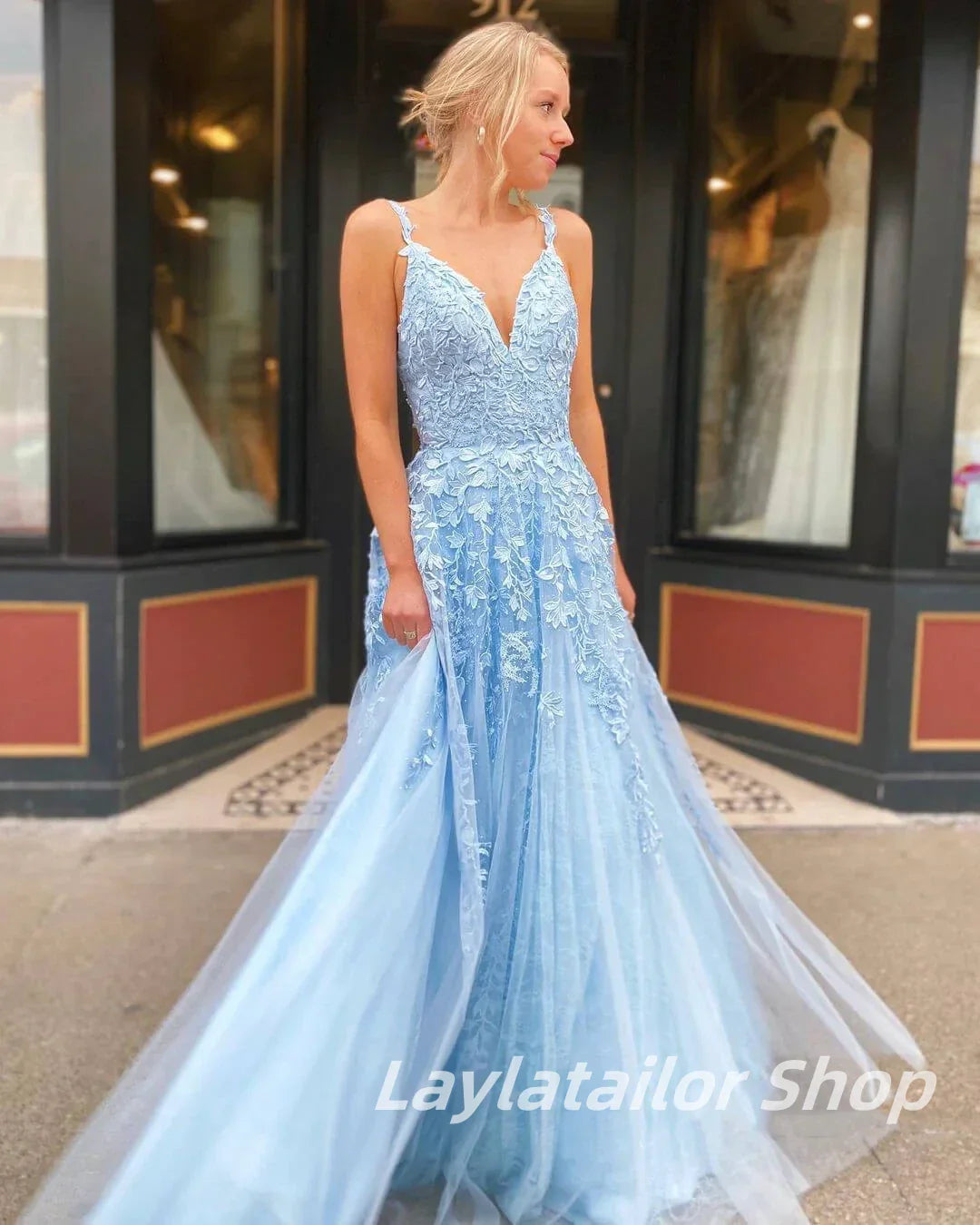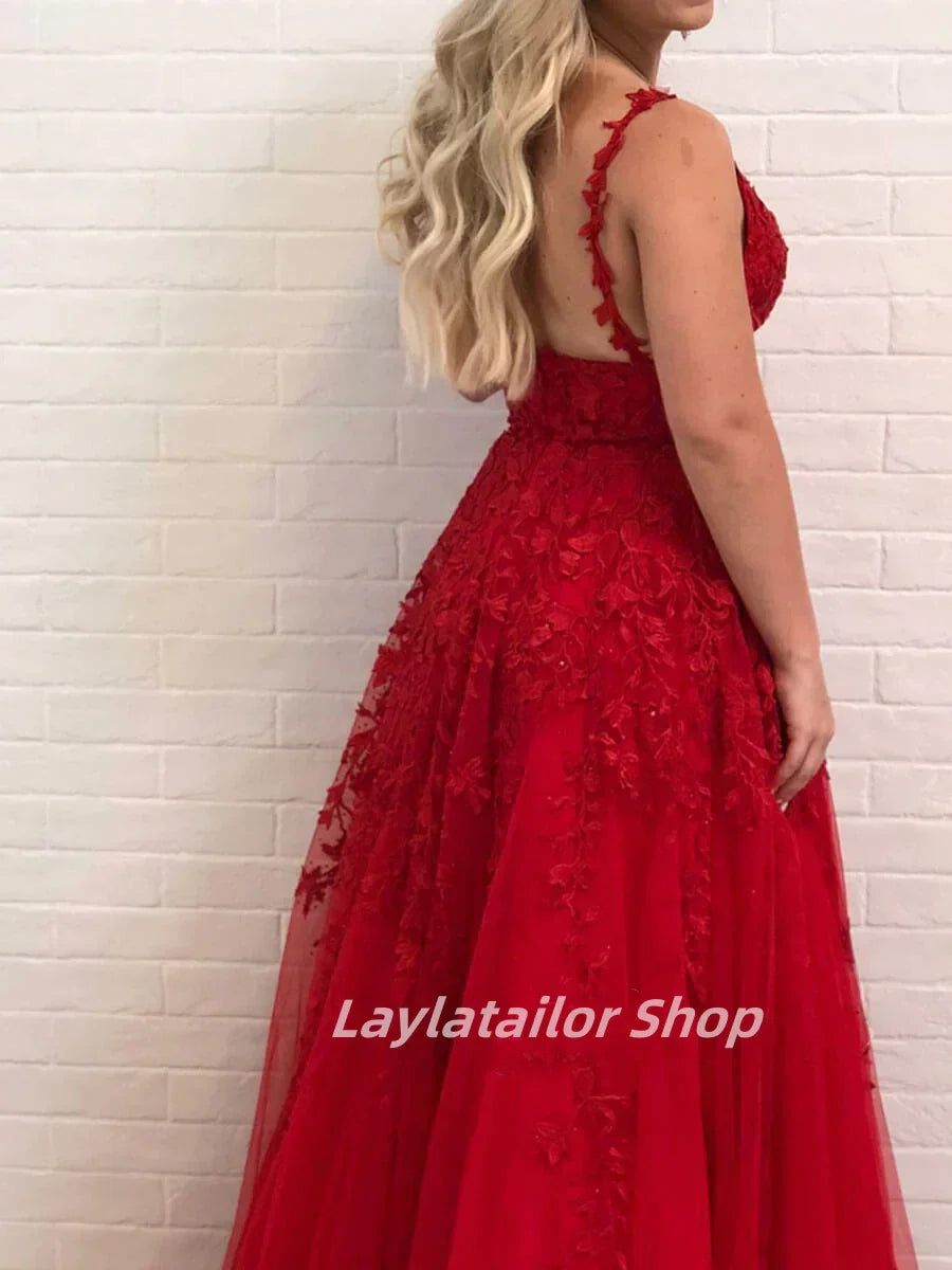 Charming Lace Appliques A-Line Long Evening Party Dress