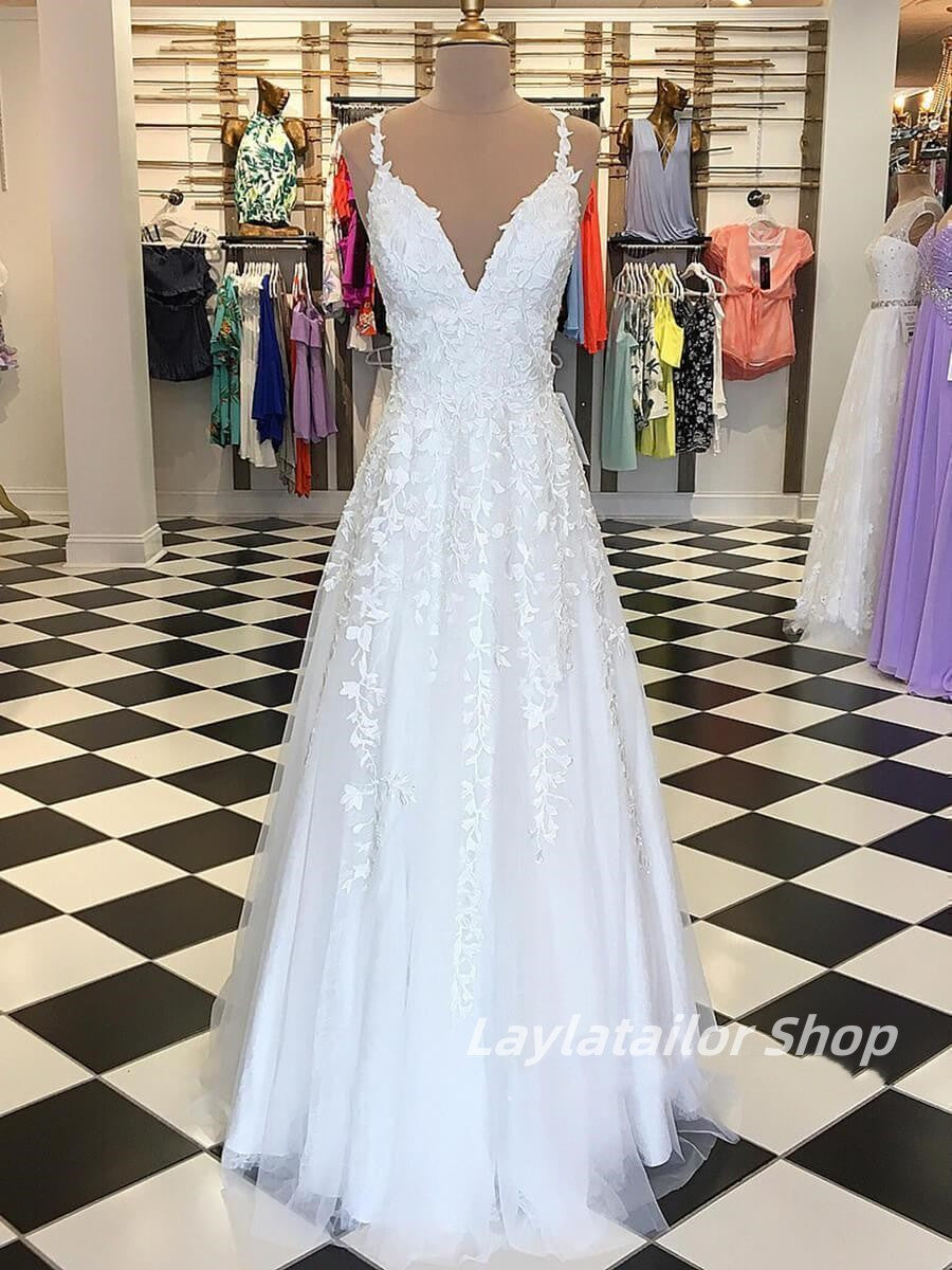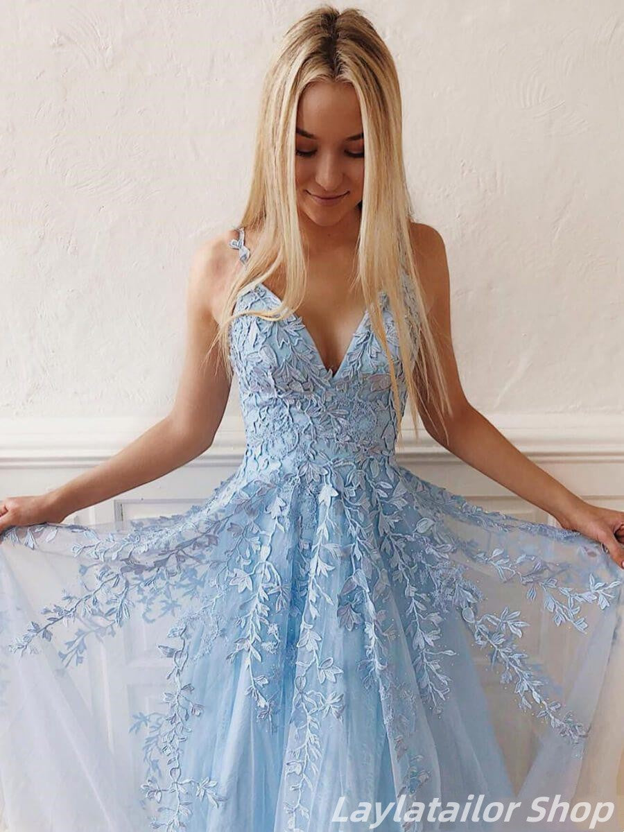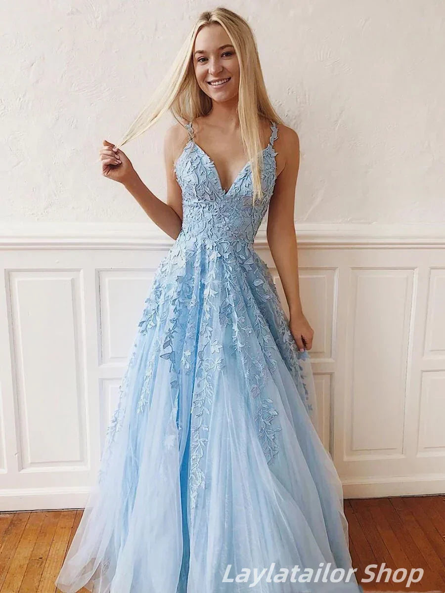 Charming Lace Appliques A-Line Long Evening Party Dress