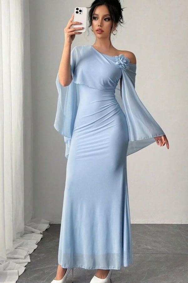 Chic Light Blue Chiffon One-Shoulder Prom Dress ssr0466
