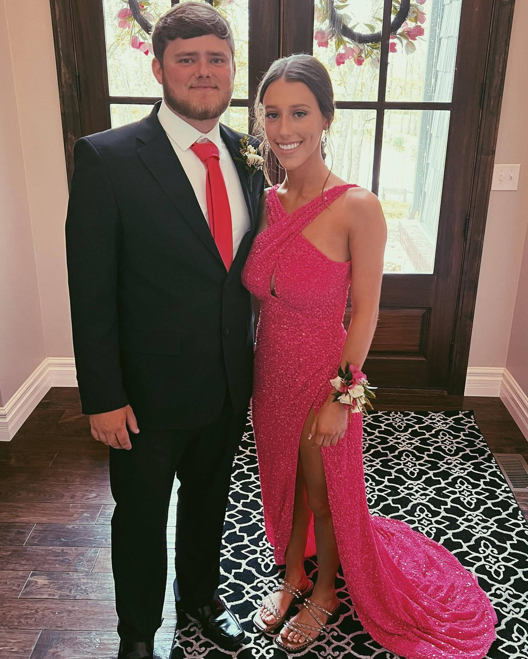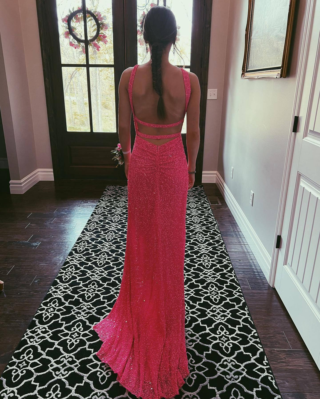 Cross Front Sequin Mermaid Long Formal Dress with Open Back