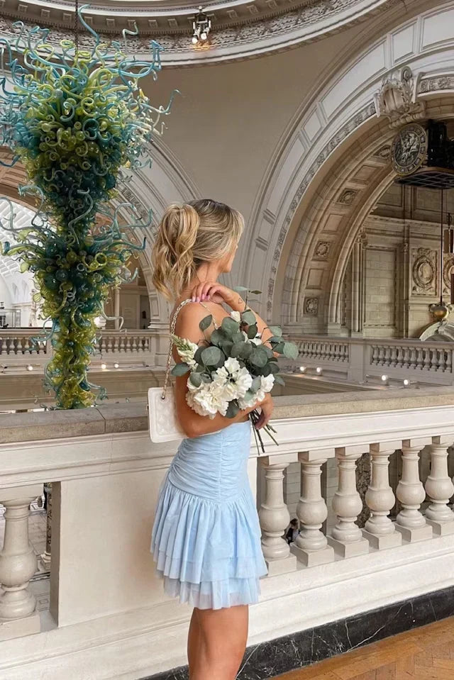 Cute Light Blue Sweetheart Neck Tulle Short Homecoming Dress Party Dress Formal Dress