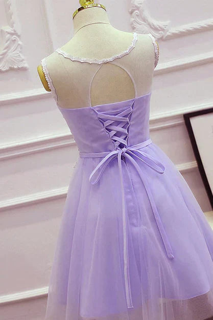Cute Round Neckline Homecoming Dress Short Lace Party Dress Sleeveless Light Purple