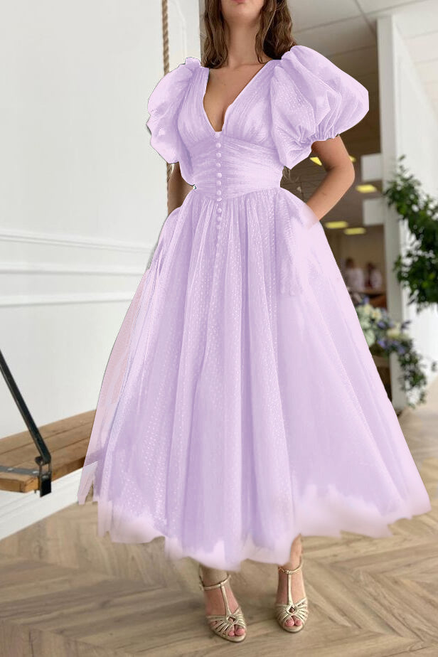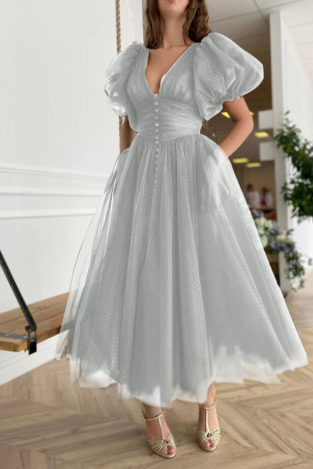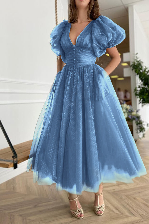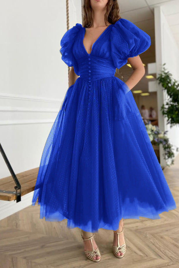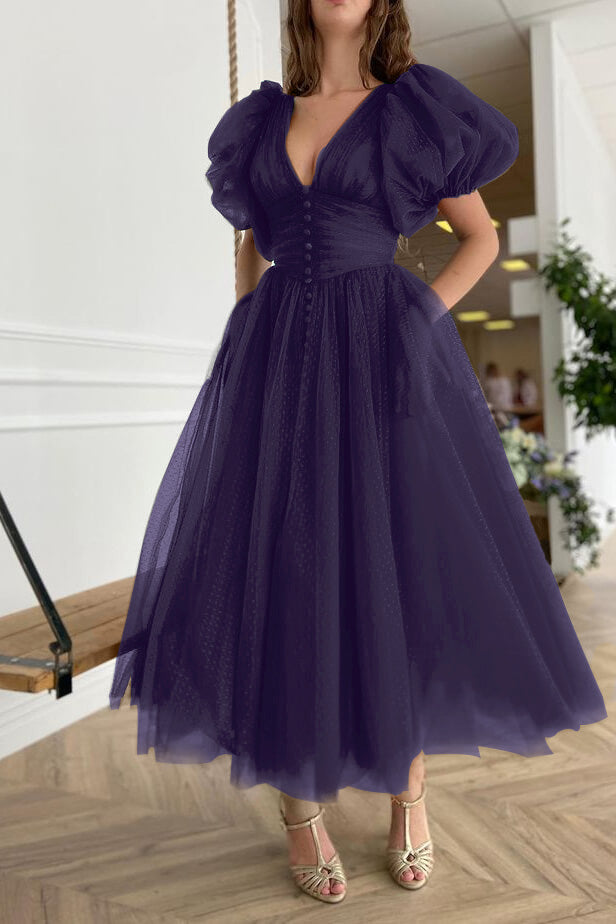 Dark Green V-Neck Evening Dress A-line With Short Sleeves On Sale ED0323