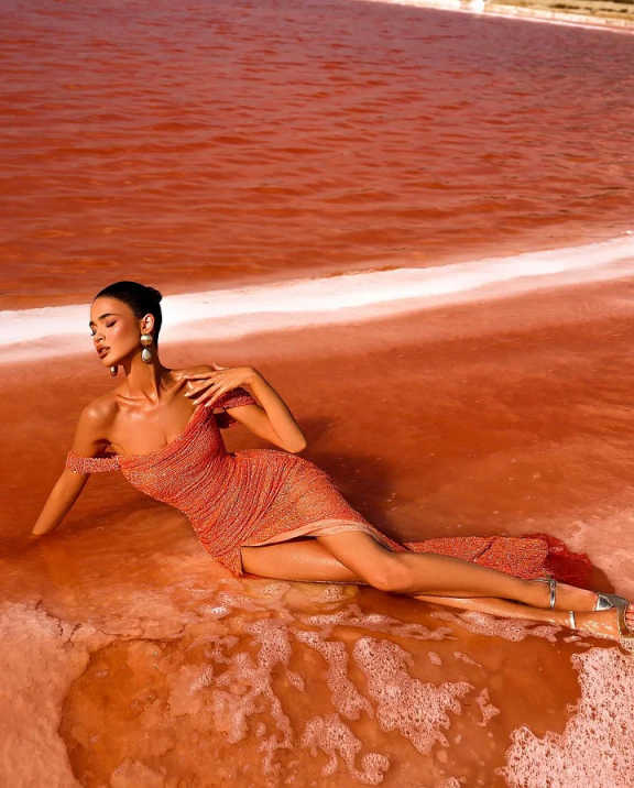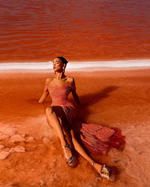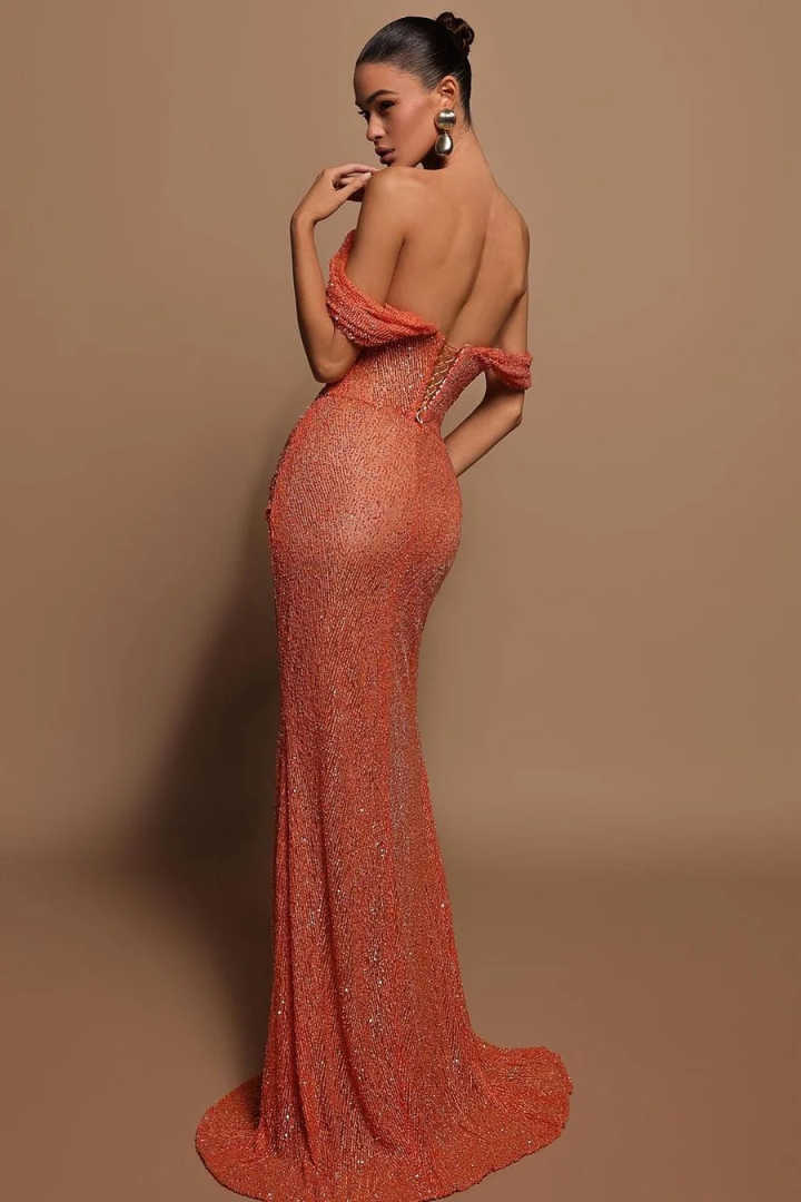 Dark Orange Off-The-Shoulder Sequins Prom Dress With High Split LX0140