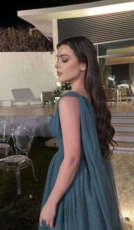 Elegant A-line Straps Tulle Long Formal Party Dress Charming Evening Dress