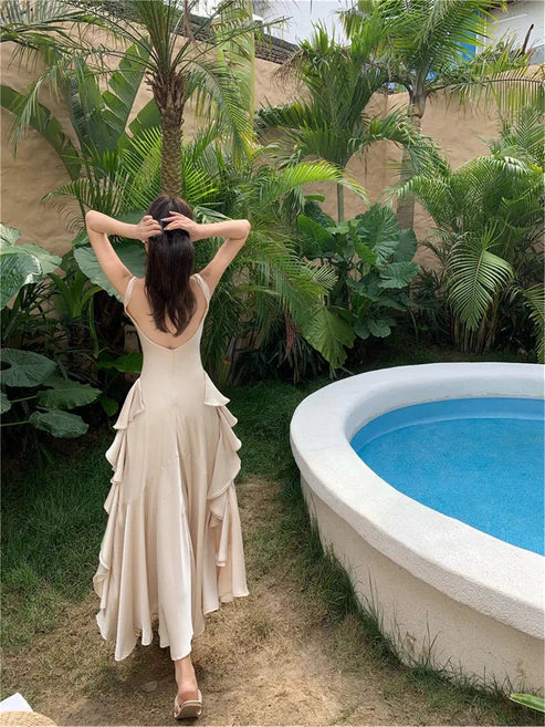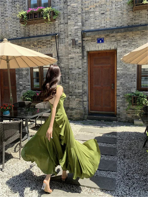 Elegant Backless Vintage Prom Dress Charming Evening Party Dress Formal Dress With Slit
