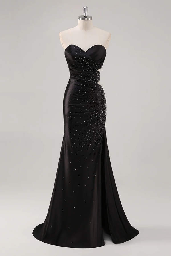 Elegant Black Sweetheart Beaded Split Prom Dress ssr0628
