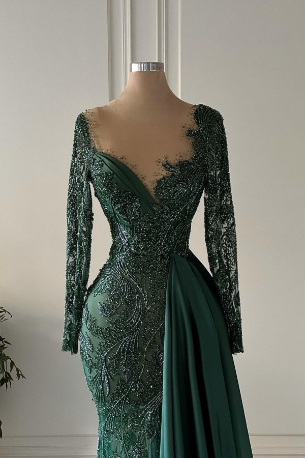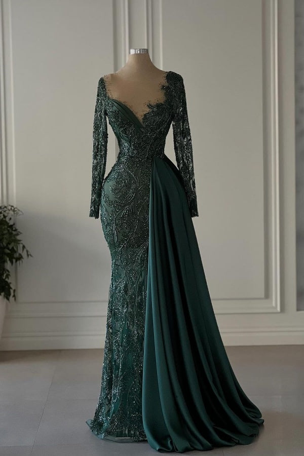 Elegant Dark Green Luxurious Embroidery Mermaid Prom Dress With Satin Trailing ssr0179