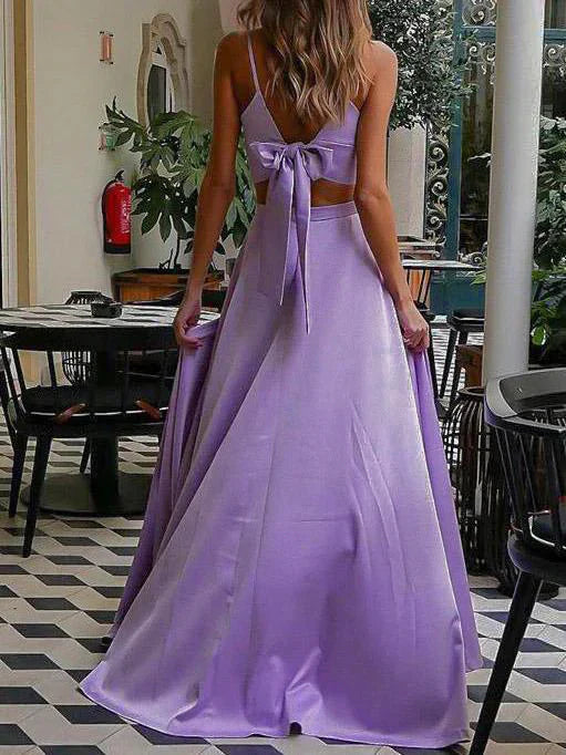 Fashion Satin Straps A-line Prom Dresses 2 Pieces Gowns With Slit Sexy Party Dress