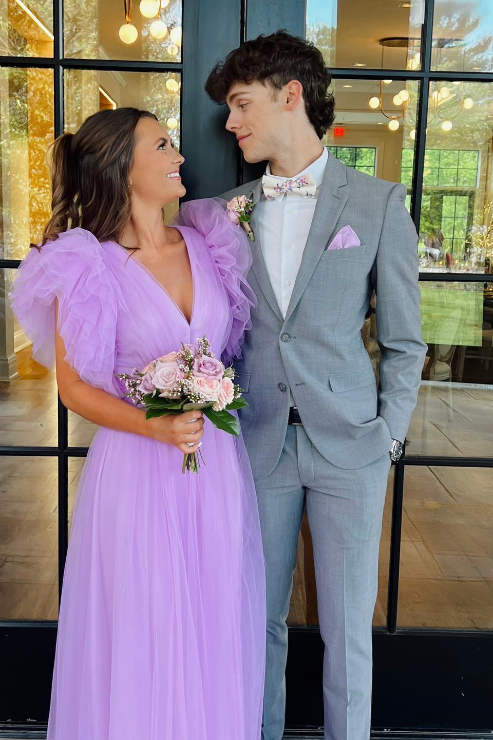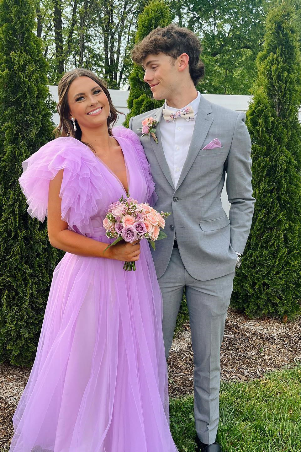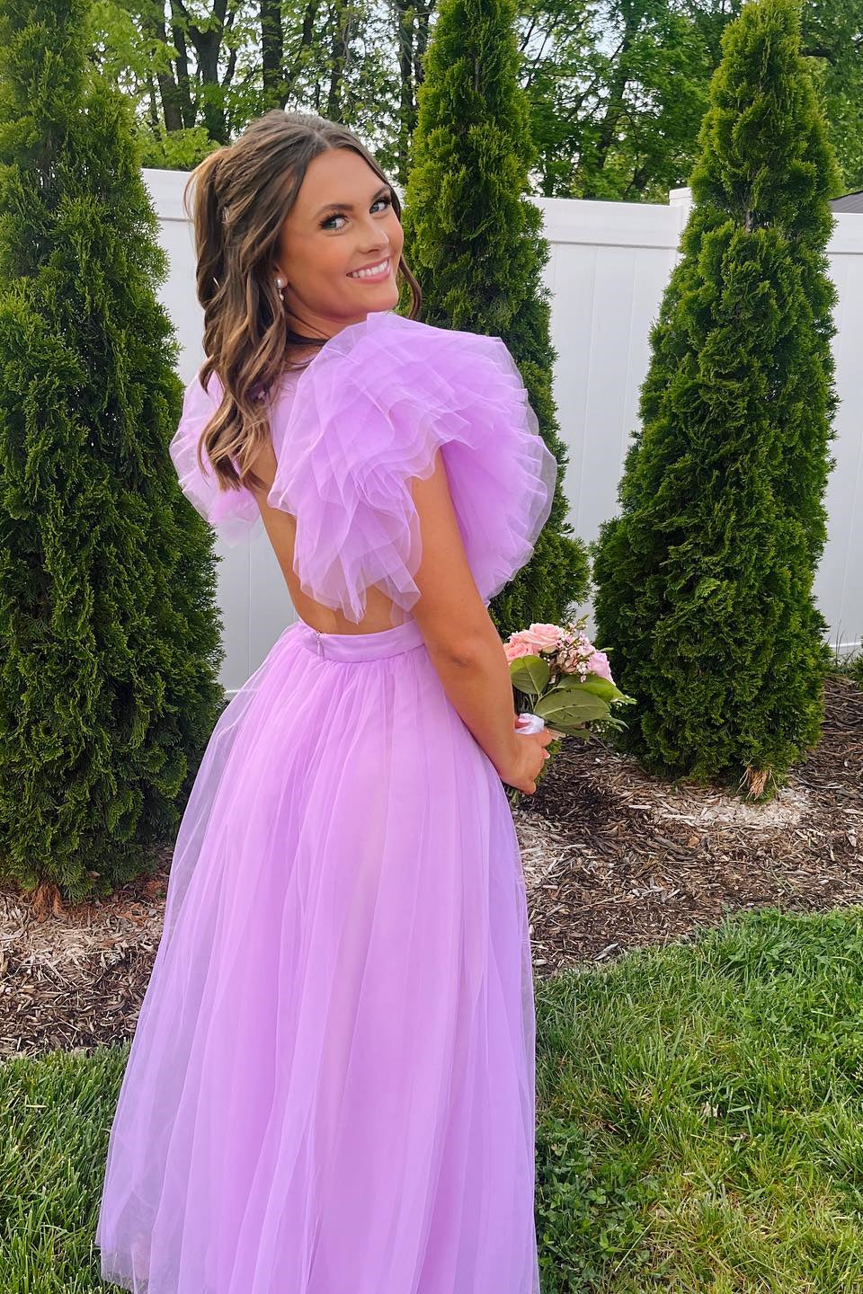 Flare Sleeves Light Purple Tulle Long Formal Dress