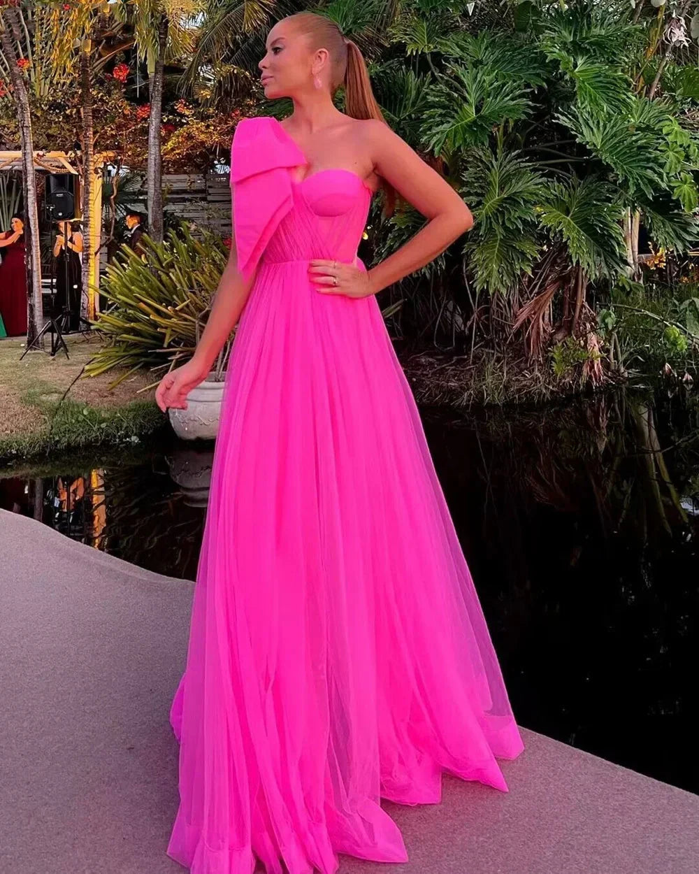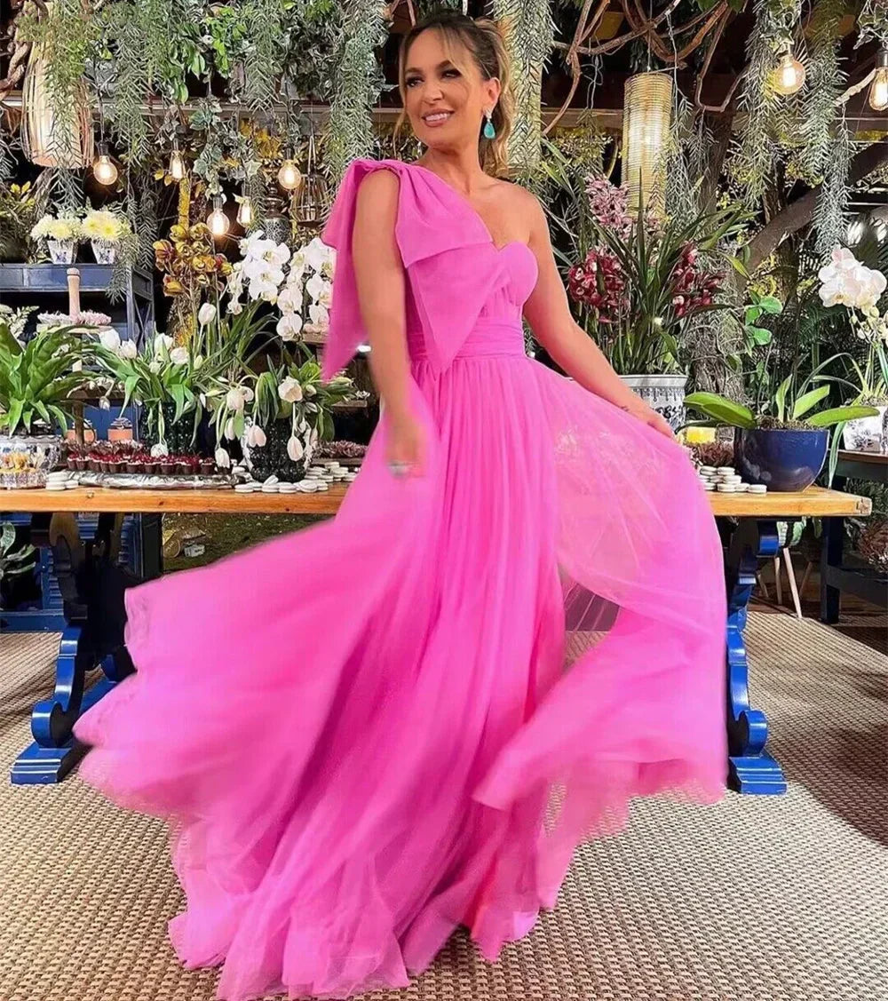 Fuchsia Tulle A-Line Sweetheart Long Prom Dress
