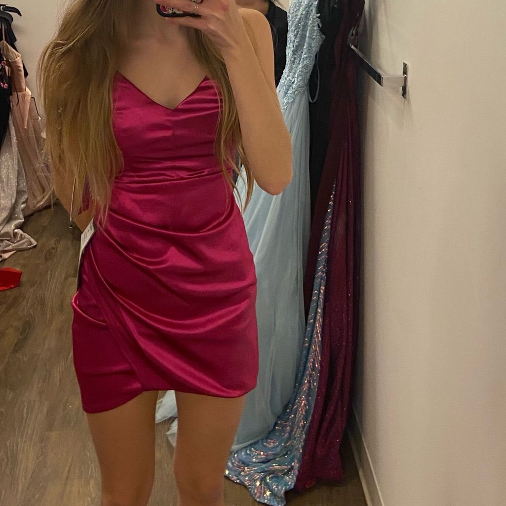 Fuchsia V-Neck Homecoming Dresses Short Graduation Dress, SSR2972