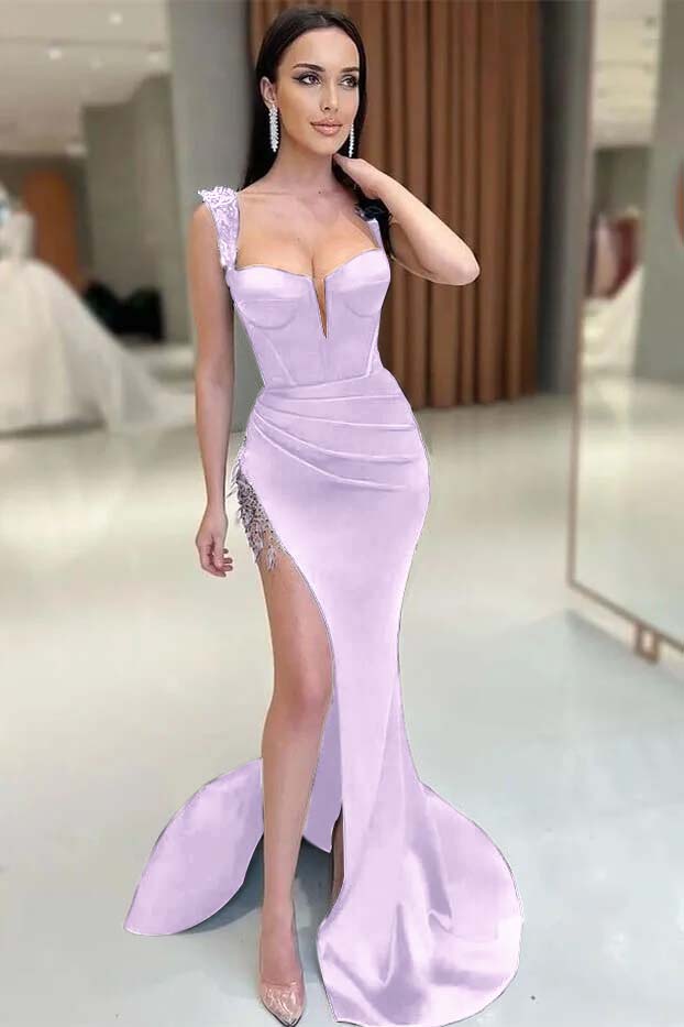Gorgeous Black V-Neck Split Mermaid Sleeveless Prom Dress With Beadings On Sale ED0328