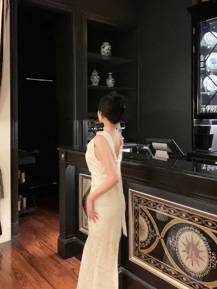 Gorgeous Mermaid Jewel Neckline White Satin Floral Date Night Dress Long Prom Dresses Birthday Outfits, SSR3608
