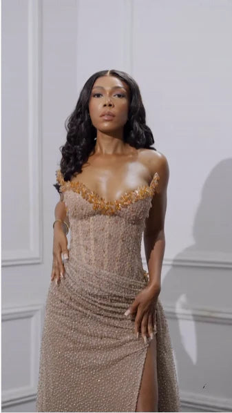 Gorgeous Mermaid Spaghetti Straps Floor Length Sequin Slit Evening Dress Prom Dresses,SSR1121