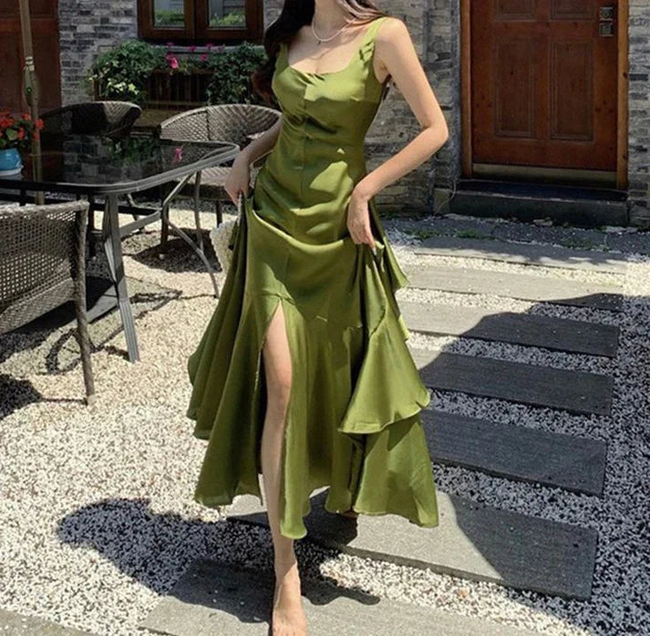 Green Backless Ruffles A-Line Long Prom Dress Charming Party Dress Formal Dress