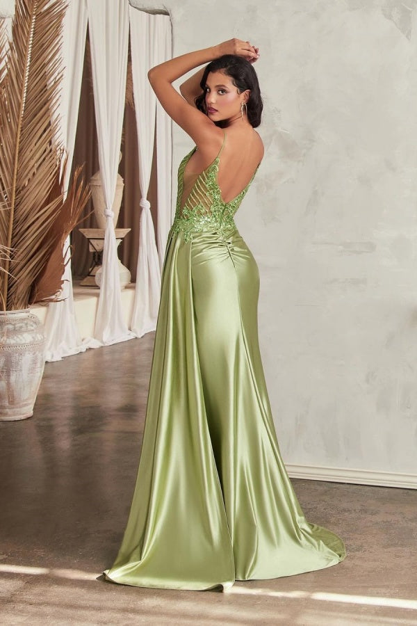 Green Embroidery Split Spaghetti Straps Prom Dress ssr0293