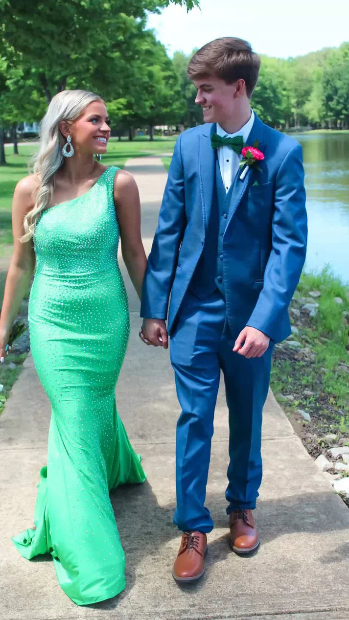 Green One Shoulder Mermaid Long Prom Dress Formal Party Dress Charming Evening Dress