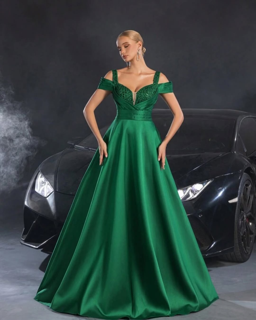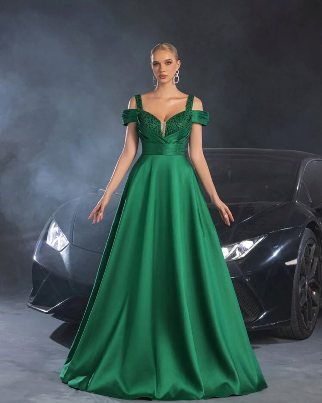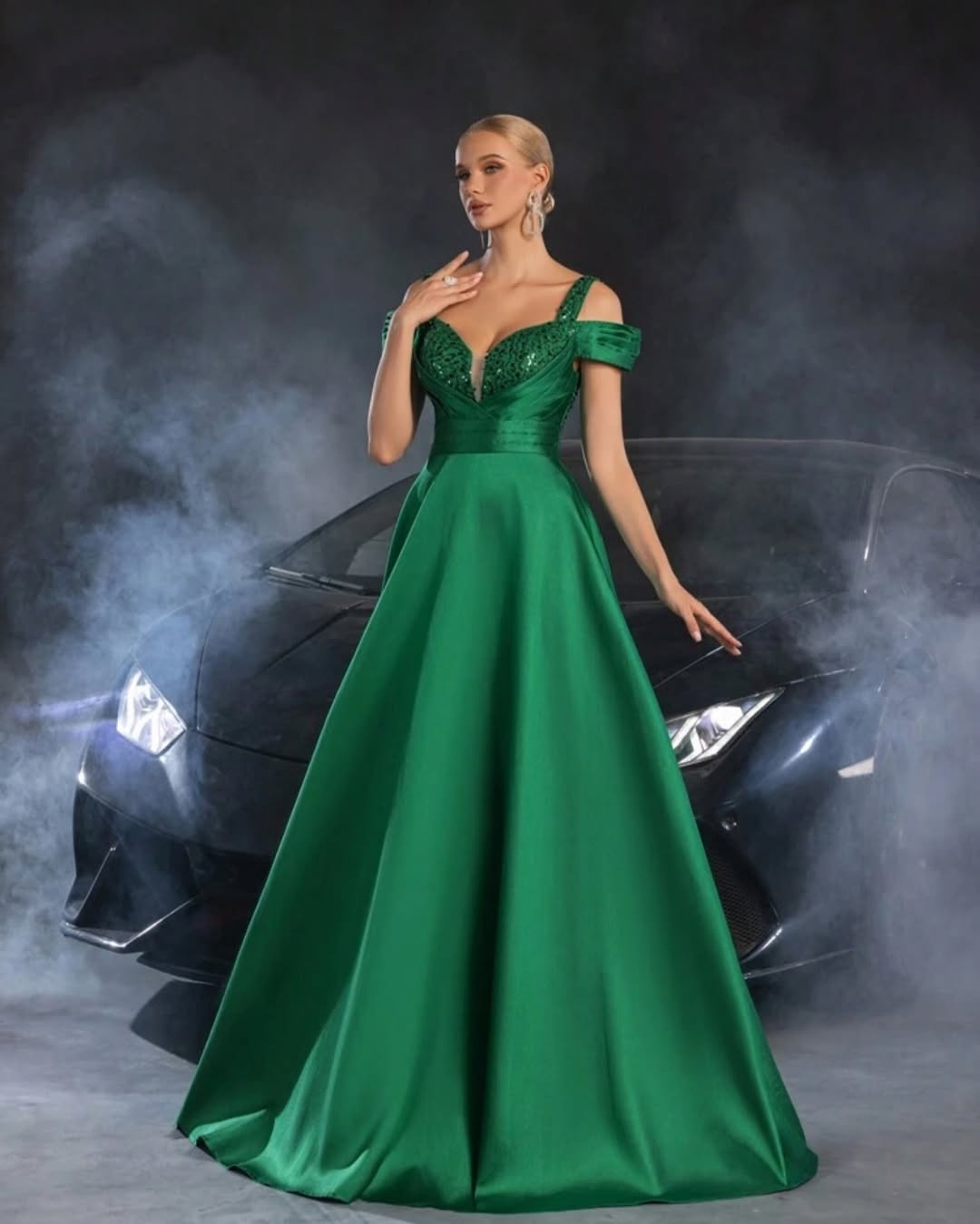 Green Sequins Wide Shoulder Straps Prom Dress ssr0343
