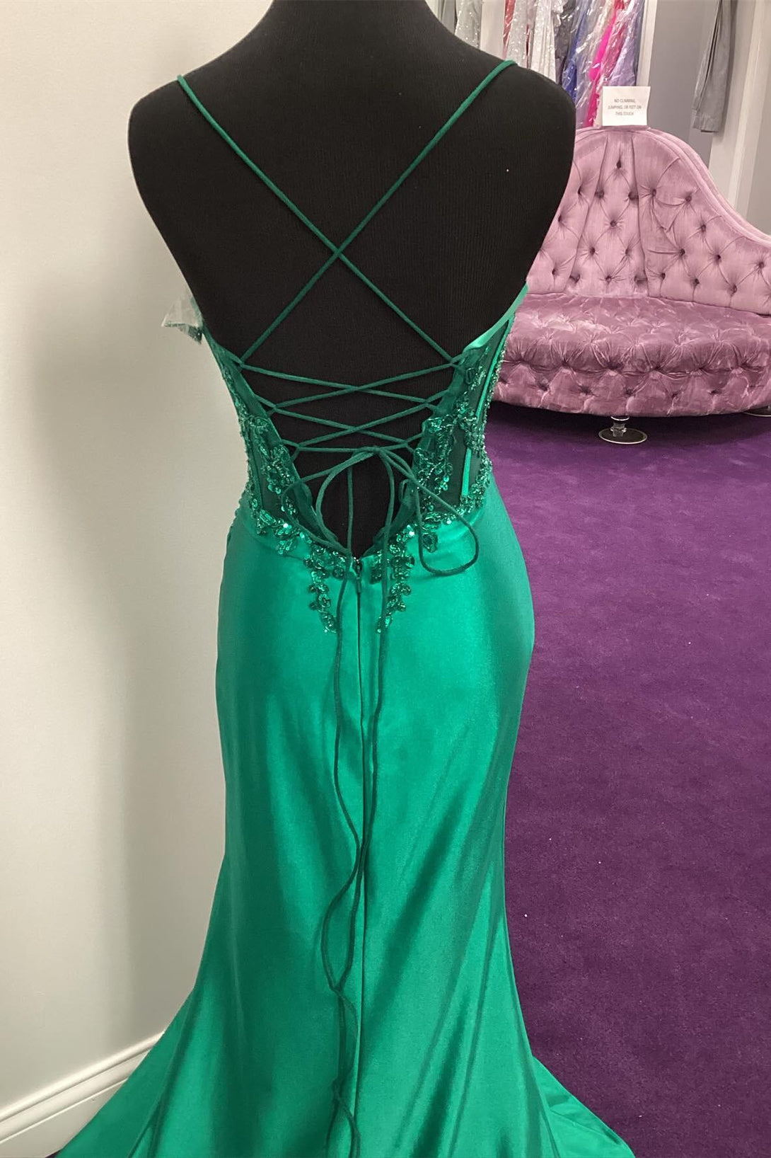 Green Sheer Appliques Satin Mermaid Long Party Dress