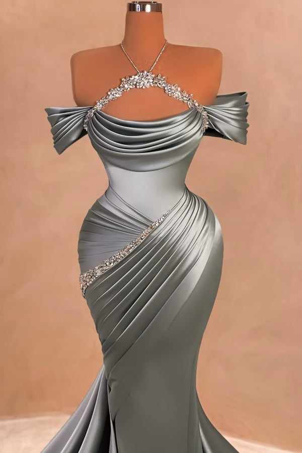 Halter Beaded Off-The-Shoulder Long Prom Dress ssr0340