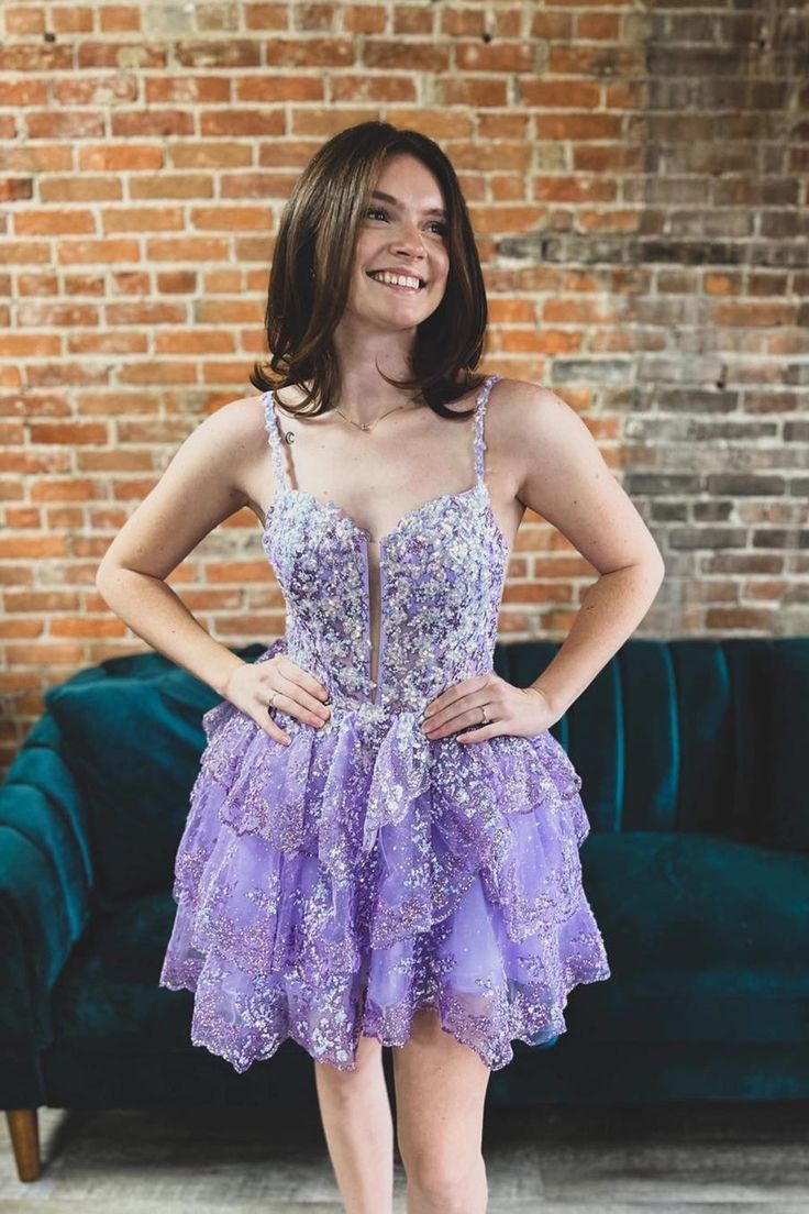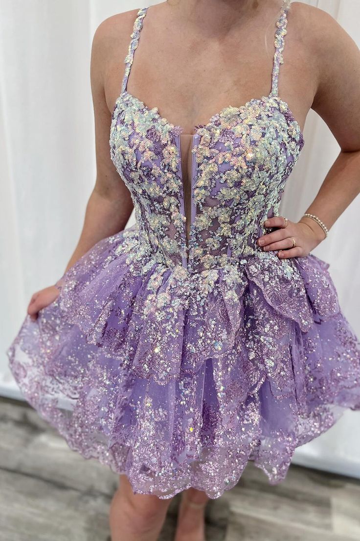 Elevate your style with this Lavender Floral Lace Homecoming Dress. The intricate floral lace design and ruffle detailing add a touch of femininity to this classic mini party gown. Perfect for homecoming, this dress will have you looking and feeling confident and chic.