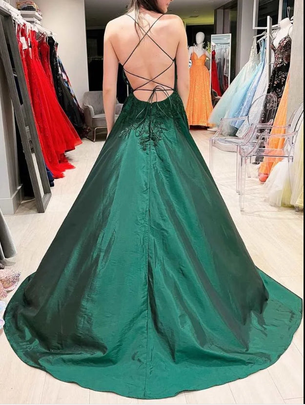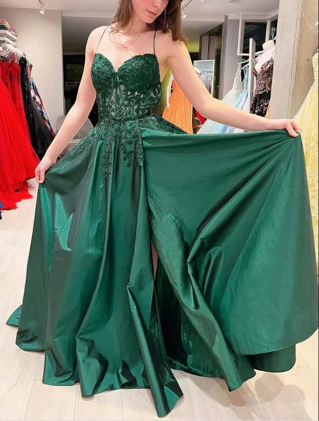 Hot Pink Floral Appliques Lace-Up A-Line Prom Gown Elegant Evening Dress Charming