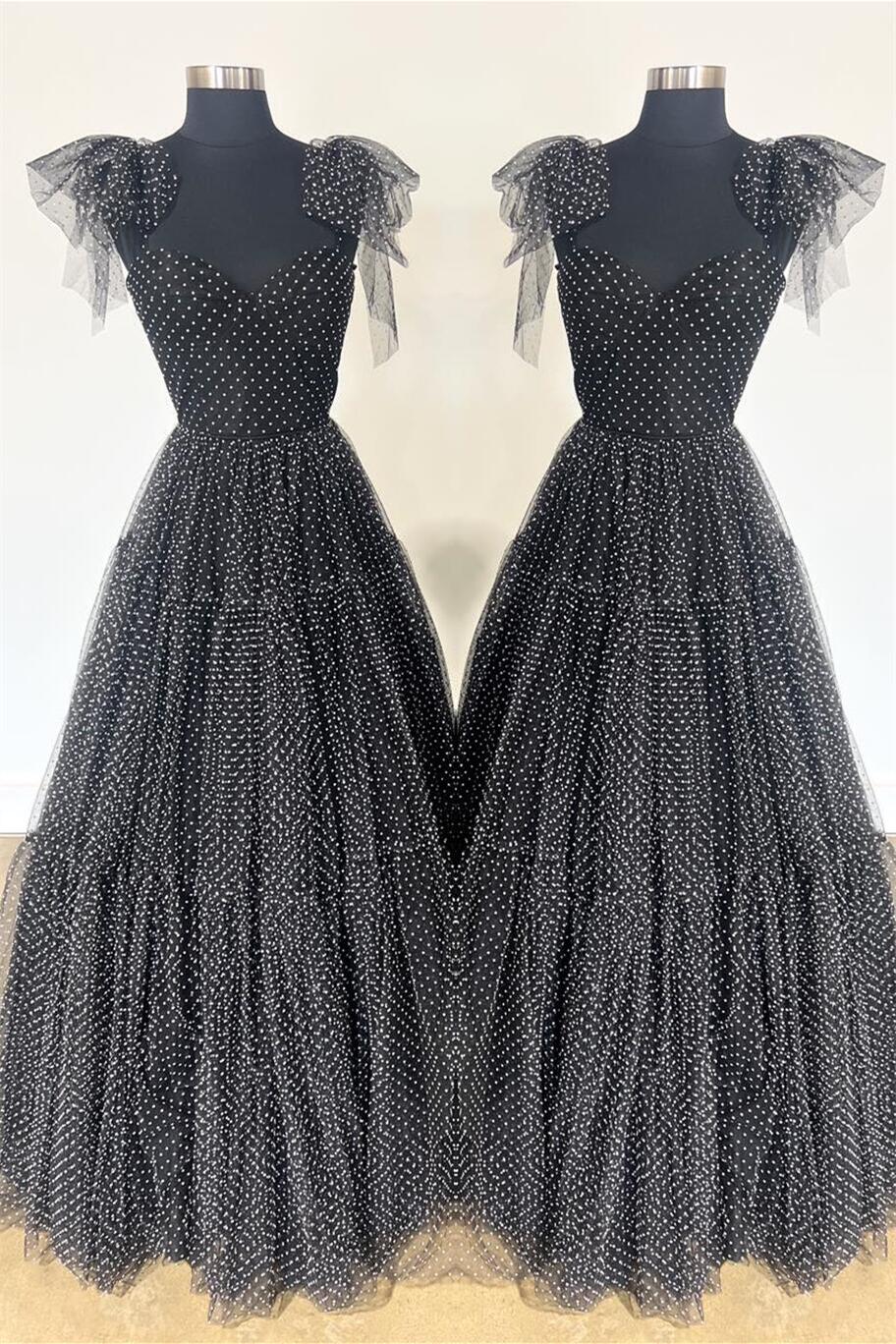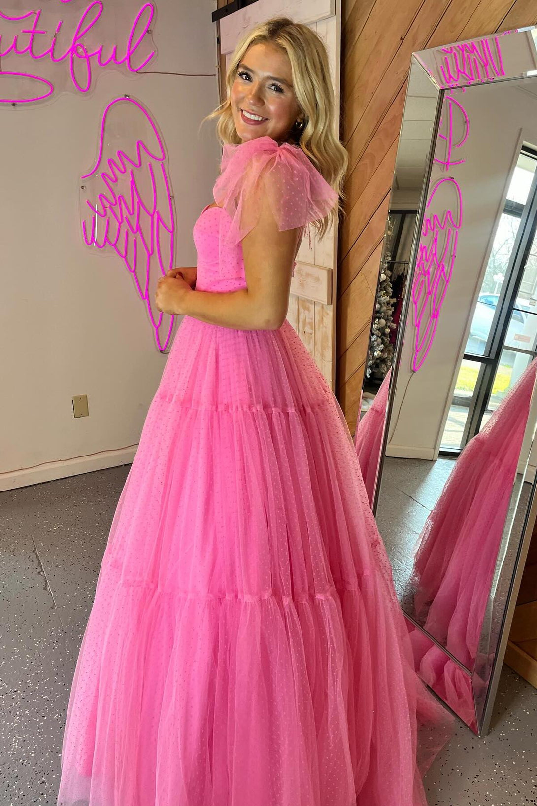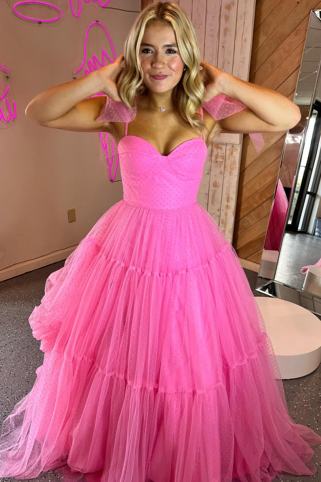 Hot Pink Polk Dots A-line Long Formal Dress