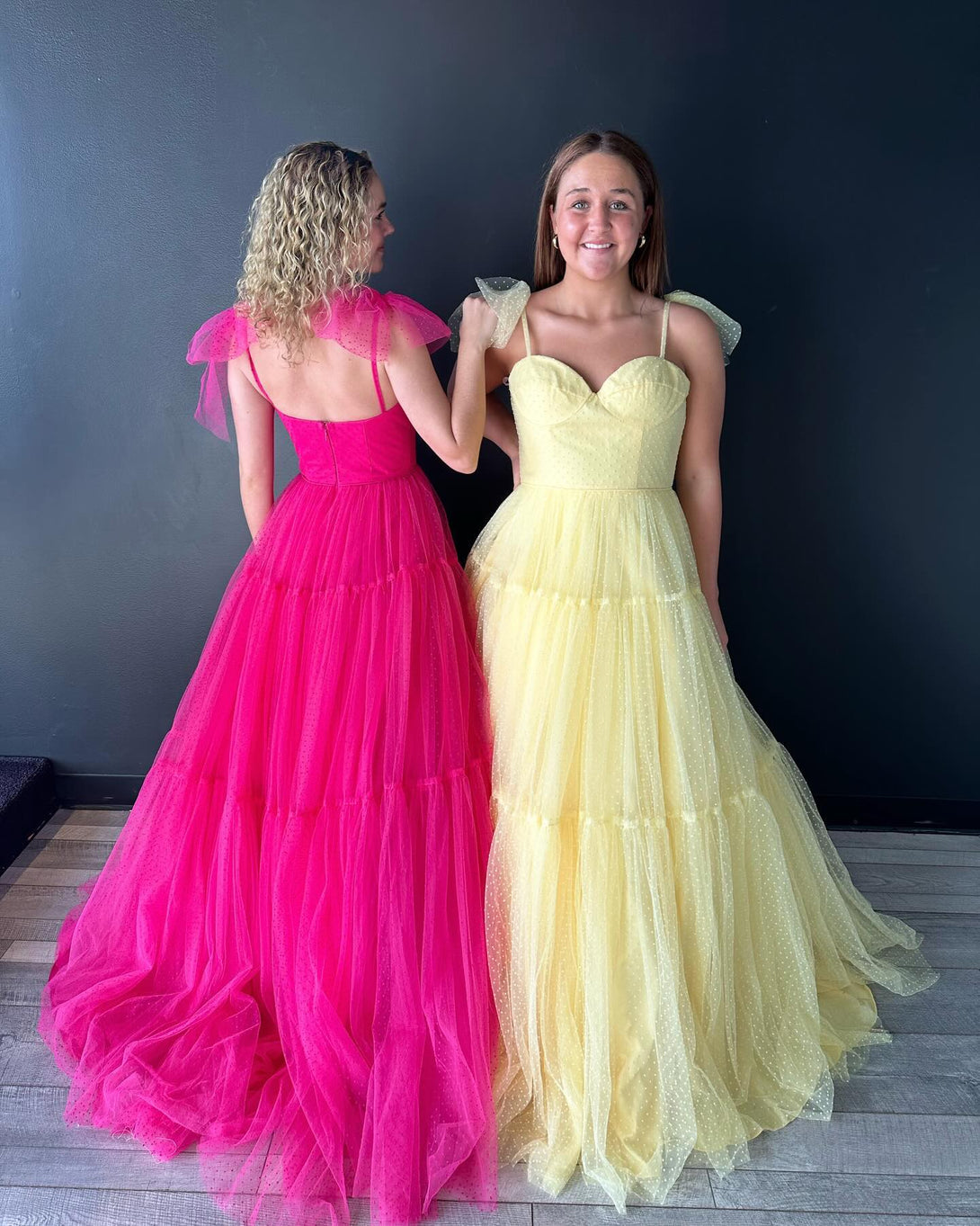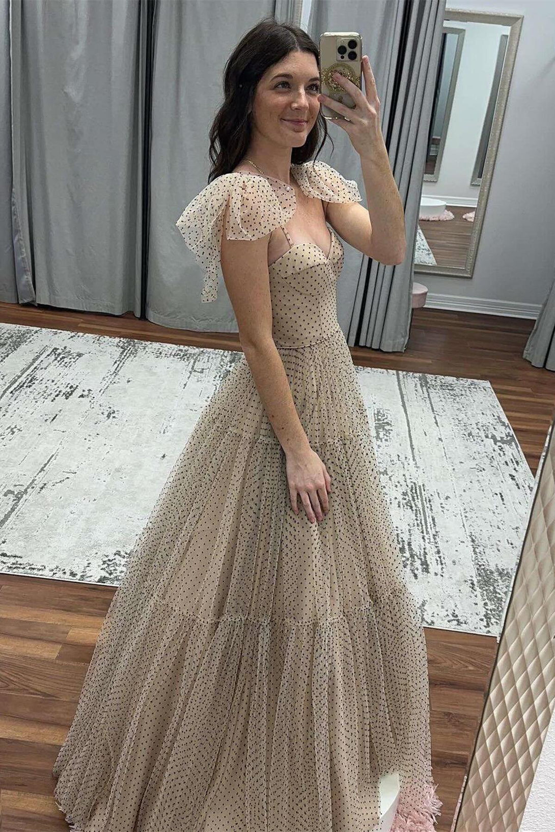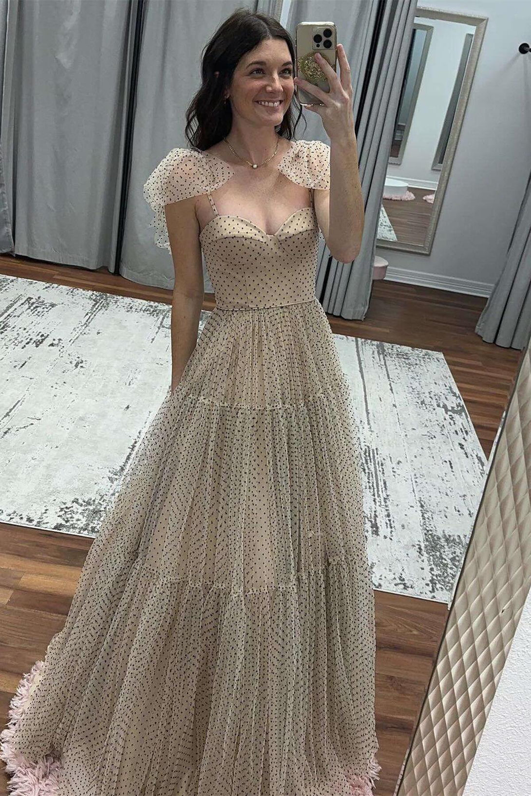 Hot Pink Polk Dots A-line Long Formal Dress