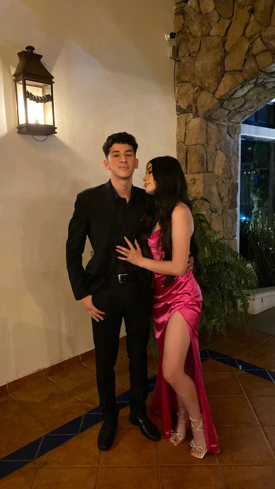 Charming Satin Mermaid Long Party Dress Graduation Dress Evening Dress With Slit
